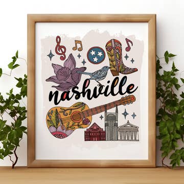 Custom map print of Nashville, Tennessee featuring a rendered satellite view. Each print is expertly printed on museum quality matte paper in the US and comes flat-packaged with a heavy duty backing board and self-sealing plastic wrap. Choose either portrait or landscape layout. Dimensions - 12" x 18". Weight - 0.5lbs.