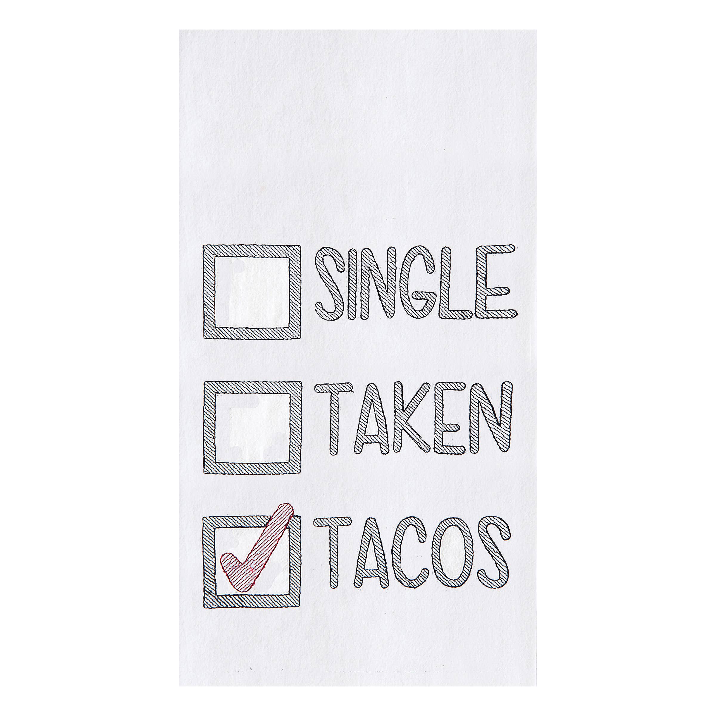 Valentine's Day Single Taken Tacos Kitchen Towel Measurements 27 inch W x 27 inch L 100% Cotton