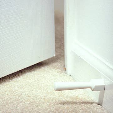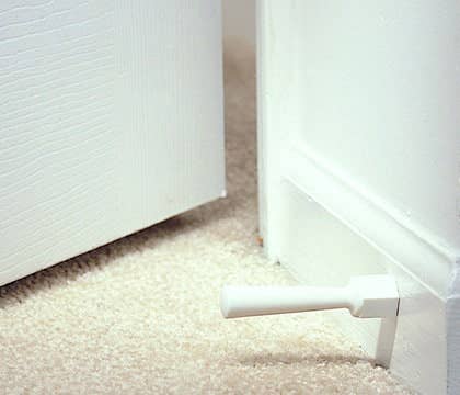 Let the breeze in with this reliable door wedge, that stores around most standard door knobs when not in use. Simply unsnap the closure to wrap strap around a knob then re-snap to store. With a non-slip pad on the bottom to keep your door ajar as needed.