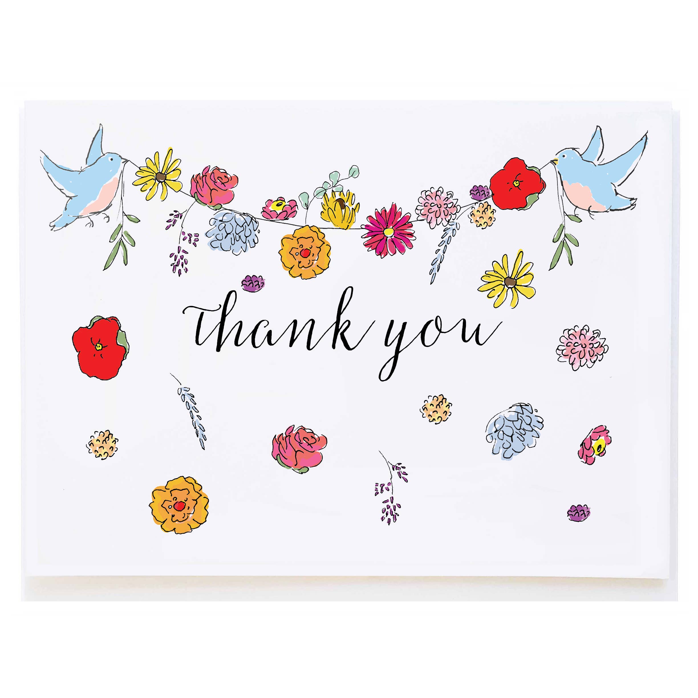 Floral Thank You Card | Thanks Card with Flowers for professional thank you notes or personal thank you notes. - Printed on 110 lbs. paper (card stock). - Blank card. - 4.25 X 5.5" (A2 size) - Alternatively, we also offer 5 X 7" size (A7 size). - Comes with a matching envelope inside an individual plastic sleeve / resealable cello bag. - Created from the original drawing using watercolor, watercolor pencils and ink and printed on card stock. - For customization please contact us.