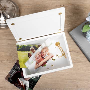 Please read entire description (+ More) & view photos - --------------------------------------------------------------------------- Celebrate life's precious moments with a handcrafted keepsake box that captures the essence of individuality. Each box is made from natural wood, showcasing unique knots, grains, and color variations, making every piece truly one-of-a-kind. Perfect for storing photos, mementos, and other sentimental items, our boxes make ideal gifts for any recipient and any occasion. Wooden Box Color Options * Natural * Dark Walnut * Ebony(Black) * Grey Want text or quote engraved on the inside lid of the box? Simply add the "+INSIDE" option with your box. PLEASE NOTE the rustic wood box and due to the nature of wood - the coloring, markings, knots, minor cracks and rustic characteristics will vary. This may also result in lighter and darker areas in the engraving. Each box will be unique! ➤➤4 DIFFERENT SIZES