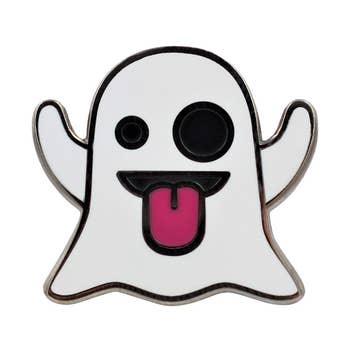 SKU: 100466 Made in China Audience: Everyone Color: Black and Orange Is Set: Individual Material: Enamel and Metal Occasion Theme: Everyday and Halloween Season: Fall and Year-Round Theme: Gothic Tone: Funny Product Language: English Weight: 8.5 g (0.3 oz) Dimensions: 5.1 x 7.6 x 2.5 cm (2 x 3 x 1 in) Product Materials: Vegan Production: Ethically sourced