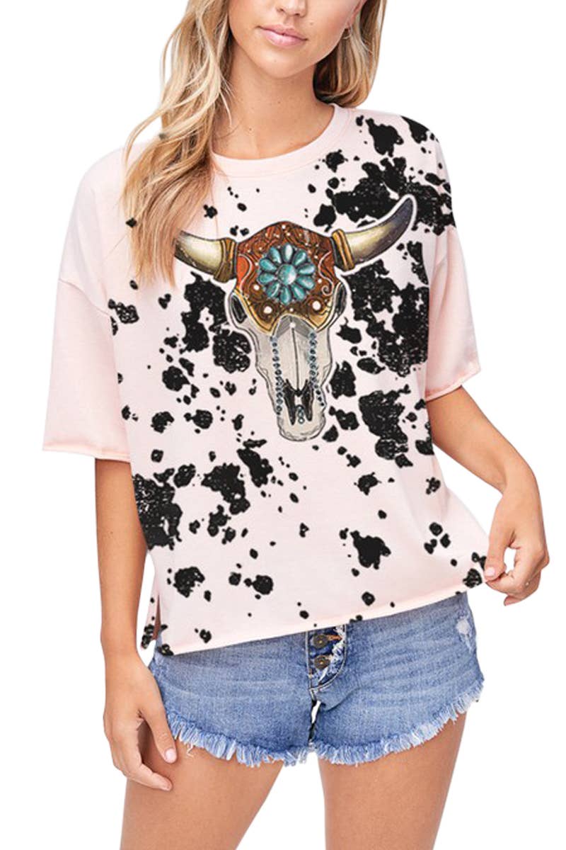 AV1205-LOREN COW GRAPHIC SHORT SLEEVE T-SHIRT