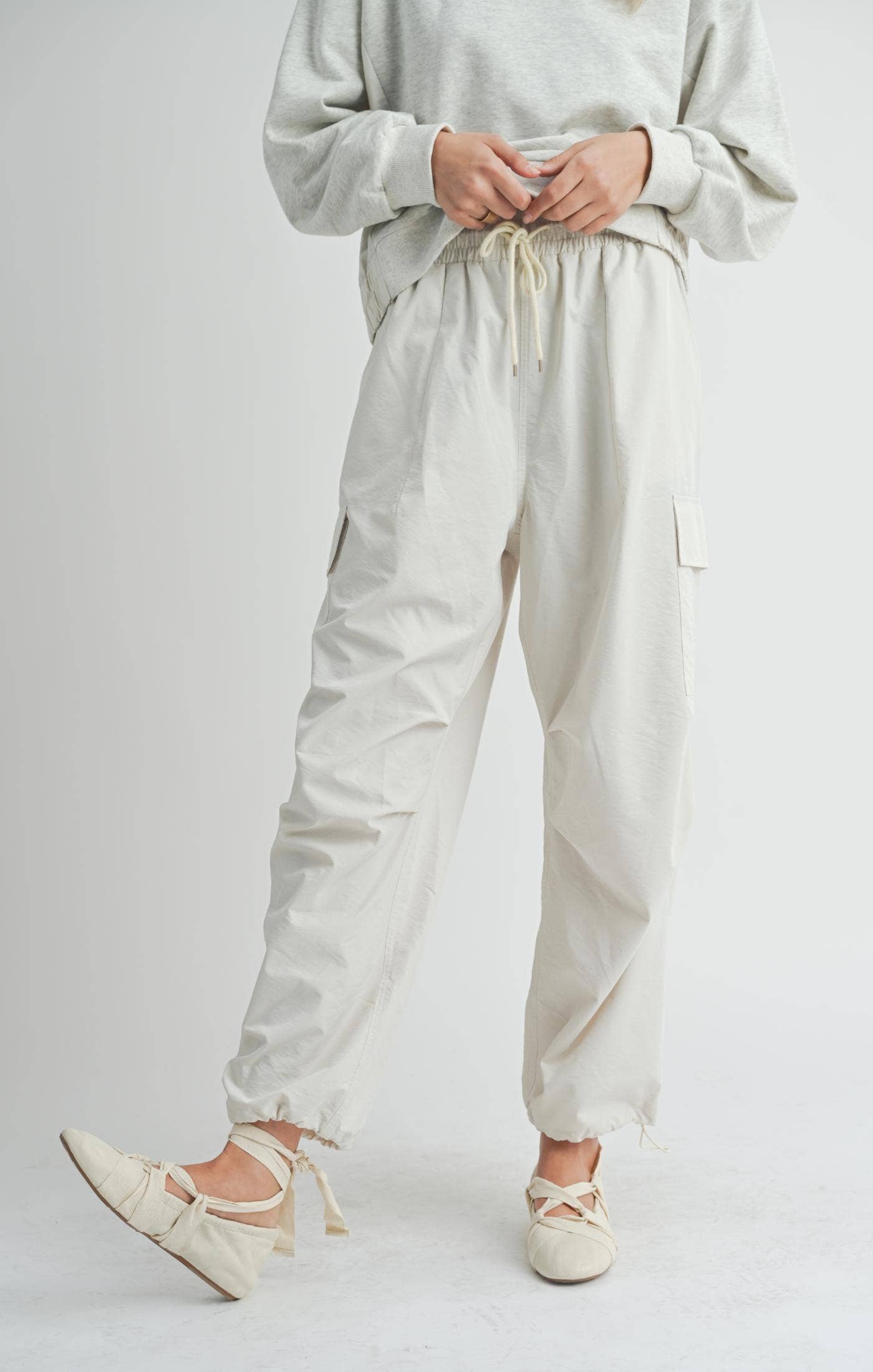 parachute pockets long pants, drawstring baggy long pants • 100% polyester • closure type: drawstring waist • details: drawstring pocket • non-stretch