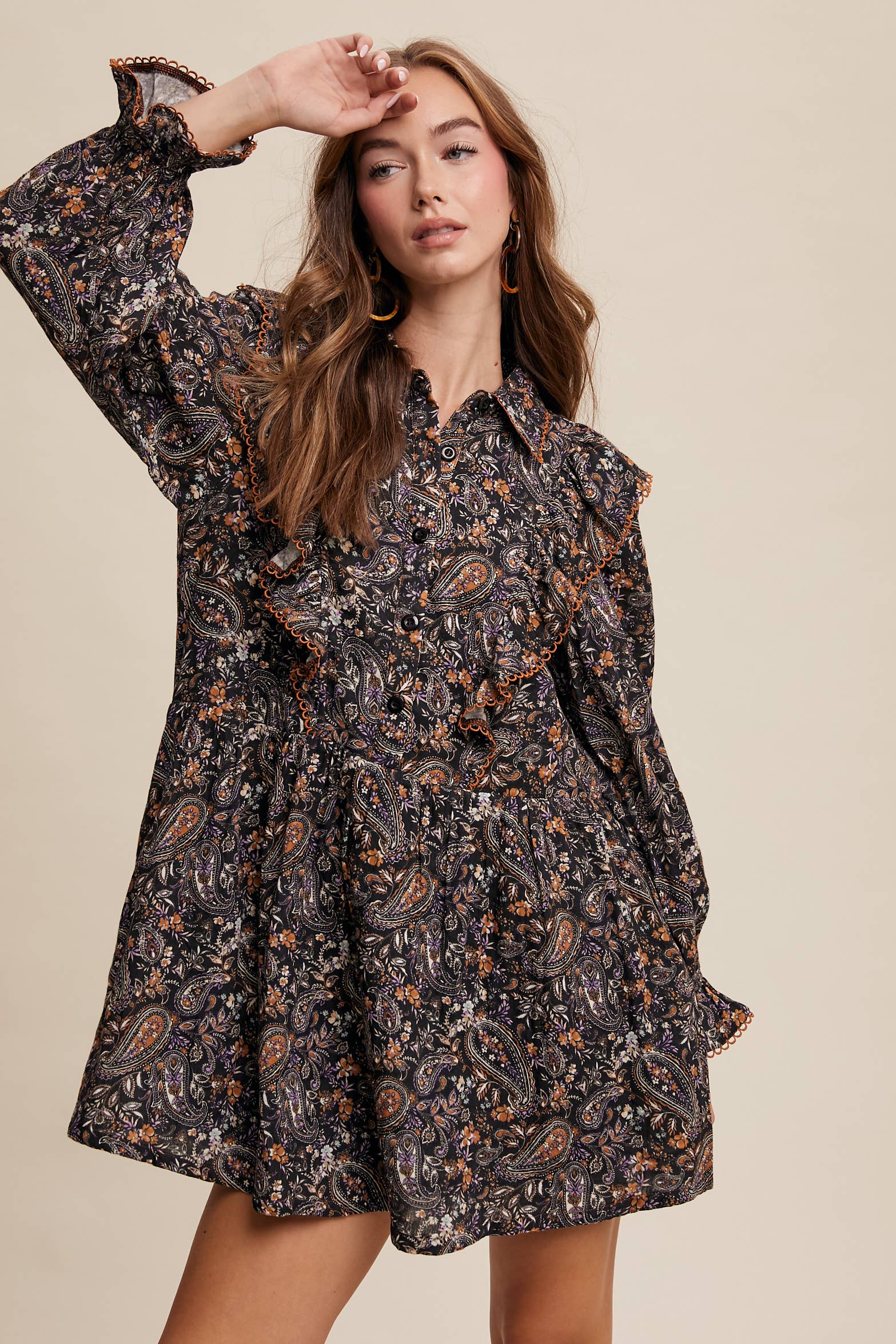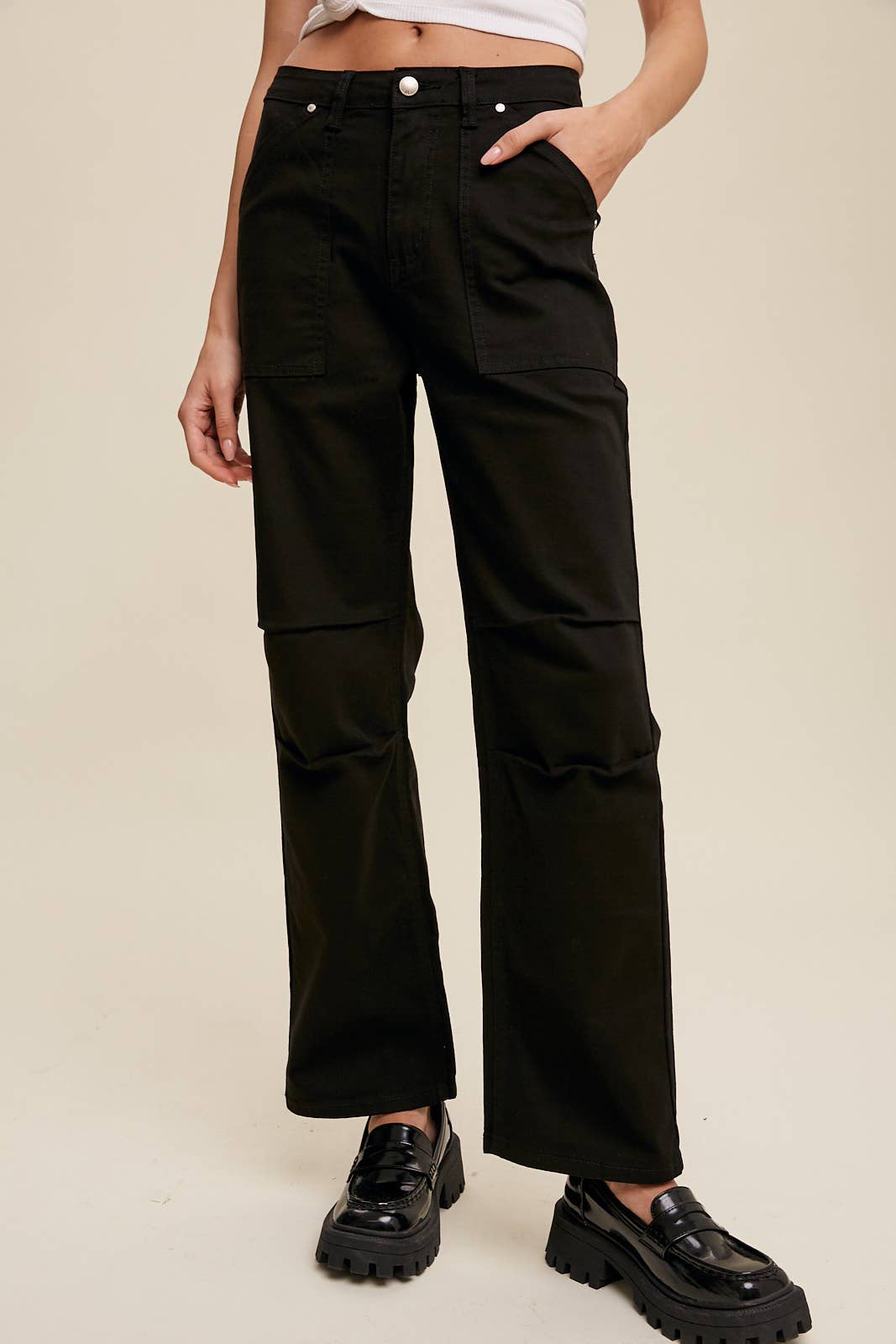 - Collared Neck: Adds a structured, polished look. - Stretched Fabric: Ensures flexibility and a comfortable fit. - Zip Closure on Center Front: Provides ease of wear with a sleek finish. - Elastic on Back Waist: Enhances shape while maintaining comfort. - Long Sleeves with Buttoned Cuffs: Offers adjustable styling for different occasions. - Functional Pockets: Combines practicality with everyday convenience. - Straight Leg: Delivers a clean and flattering silhouette. - Model is 5' 7.5" 34-24-34 and wearing a size Small This utility-inspired jumpsuit merges modern functionality with effortless style. The stretchy fabric and elastic waist offer all-day comfort, while the zip-front closure and tailored details create a streamlined look. Perfect for casual outings, weekend errands, or dressed-up streetwear looks-just pair with sneakers or ankle boots for versatile styling.
