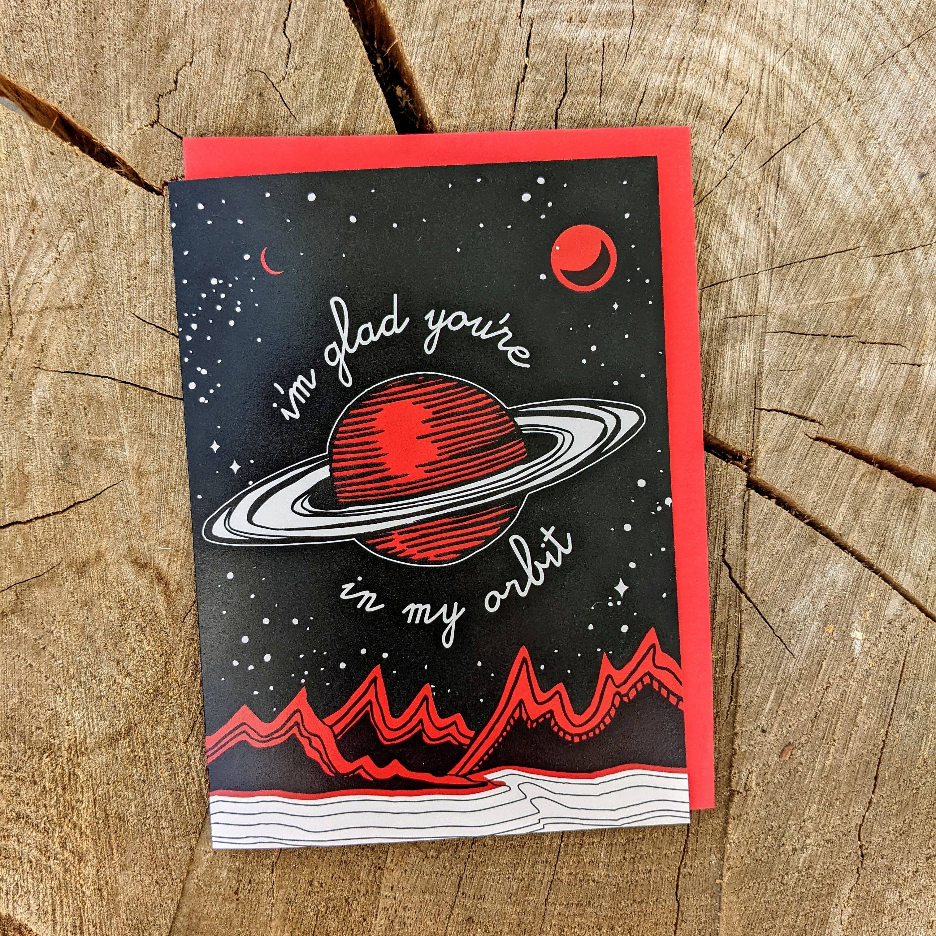 For all the space lovers out there Details: A2 size 5 1/2" x 4 1/4" when folded / letterpress and foil / comes with a gold envelope / letterpress printed with foil in the USA