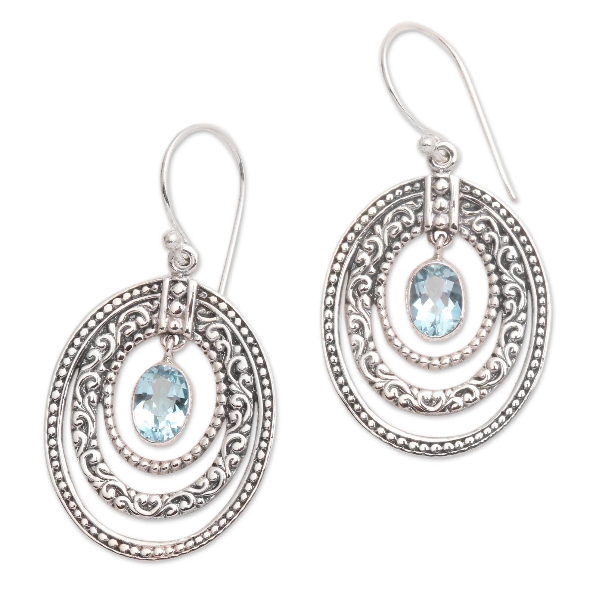 Versatility shines in these round filigree dangles. Featuring a crystal framed by delicate metalwork, accented with more crystals, these beauties go from day to night in a sparkle. Made in the USA with antiqued lead/nickel free silver plated white metal castings. Available as Leverback or with a coordinating crystal clip-on or post. Earring wires/clips made of nickel/lead free antiqued silver plated brass. Posts made of surgical steel. Available Crystal Colors: blush rose, cool green, aqua, shimmering crystal, navy blue, red, vibrant lavender Measures Approximately (from top of earring wire): 1 3/8" L x 5/8" W Style# ES3237BLR, ES3237ERN, ES3237LTU, ES3237MNL, ES3237MON, ES3237RED, ES3237TAZ Coordinating Styles: NS3237BLR, NS3237ERN, NS3237LTU, NS3237MNL, NS3237MON, NS3237RED, NS3237TAZ Fall