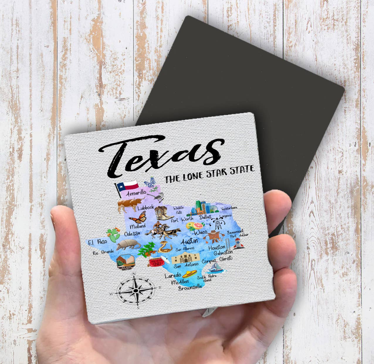We print beautiful vibrant custom images onto solid oak wood. We can customize these wooden magnets with your own city/town name and we can help source photos for your location (or you can send us your image). These examples feature Arkansas, Texas, Montana, Georgia, Oregon, etc. CUSTOMIZATION: Choose from the full assortment or individual designs. We will customize it with your town, location, or business/organization name. We do not send proofs for text changes (unless requested). If you want a custom design, please send us your image (via message or email) or enter a detailed description of what kind of custom image you would like (we will send you a proof after you place your order). • Thick chunky solid hardwood (not MDF) • Sustainably sourced American oak wood • Printed with high resolution archival inks • Made in the USA in our Utah studio • Rectangle Magnets 2" tall x 3" wide x 1/2" thick • Full sheet magnet adhered to the back • Shipped in bulk, no individual packaging