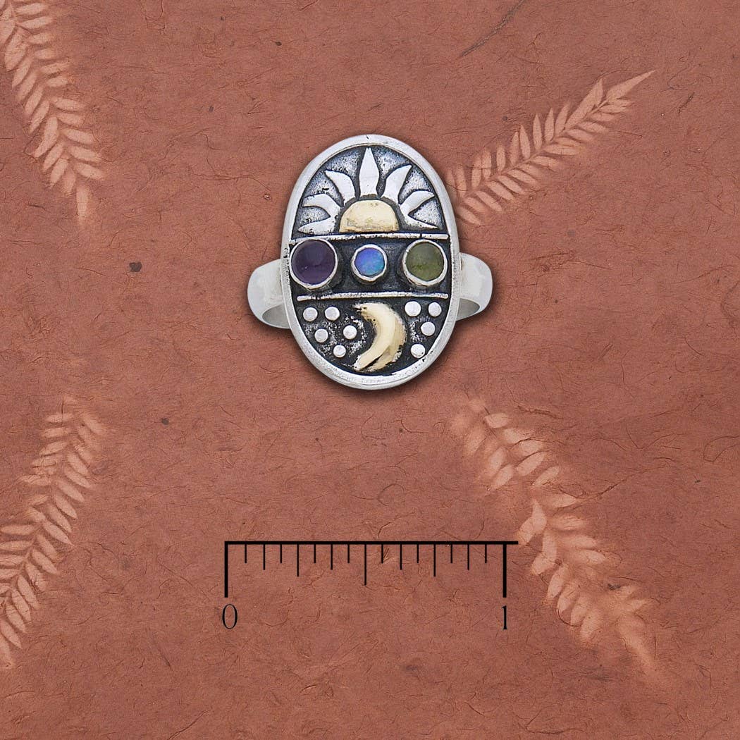 Crystal Gemstone Moon Ring - Gold or Silver