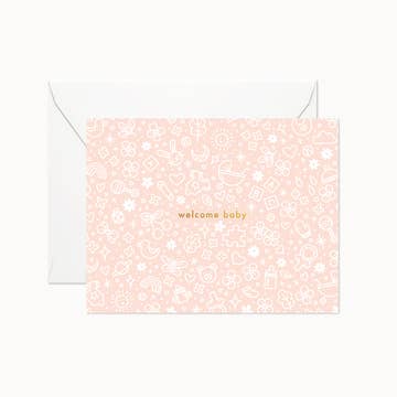 Celebrate a new baby with this colorful card that reads "HAPPY BABY SHOWER" Details: Single folded card, 4.25 x 5.5 inch (A2) Blank inside for own personal message Includes blush envelope Printed in full color
