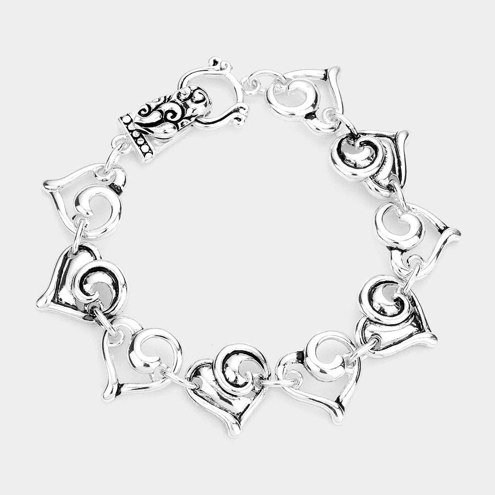 FR6439 2-2 Antique Silver Filigree Metal Stretch Bracelet