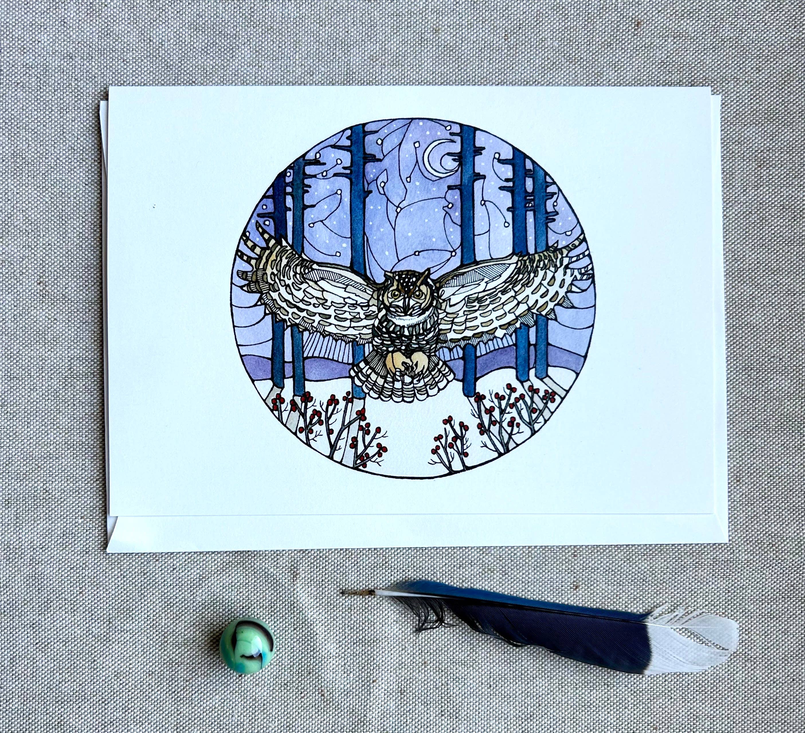 Great Horned Owl A2 Size Notecards, Blank Greeting Cards