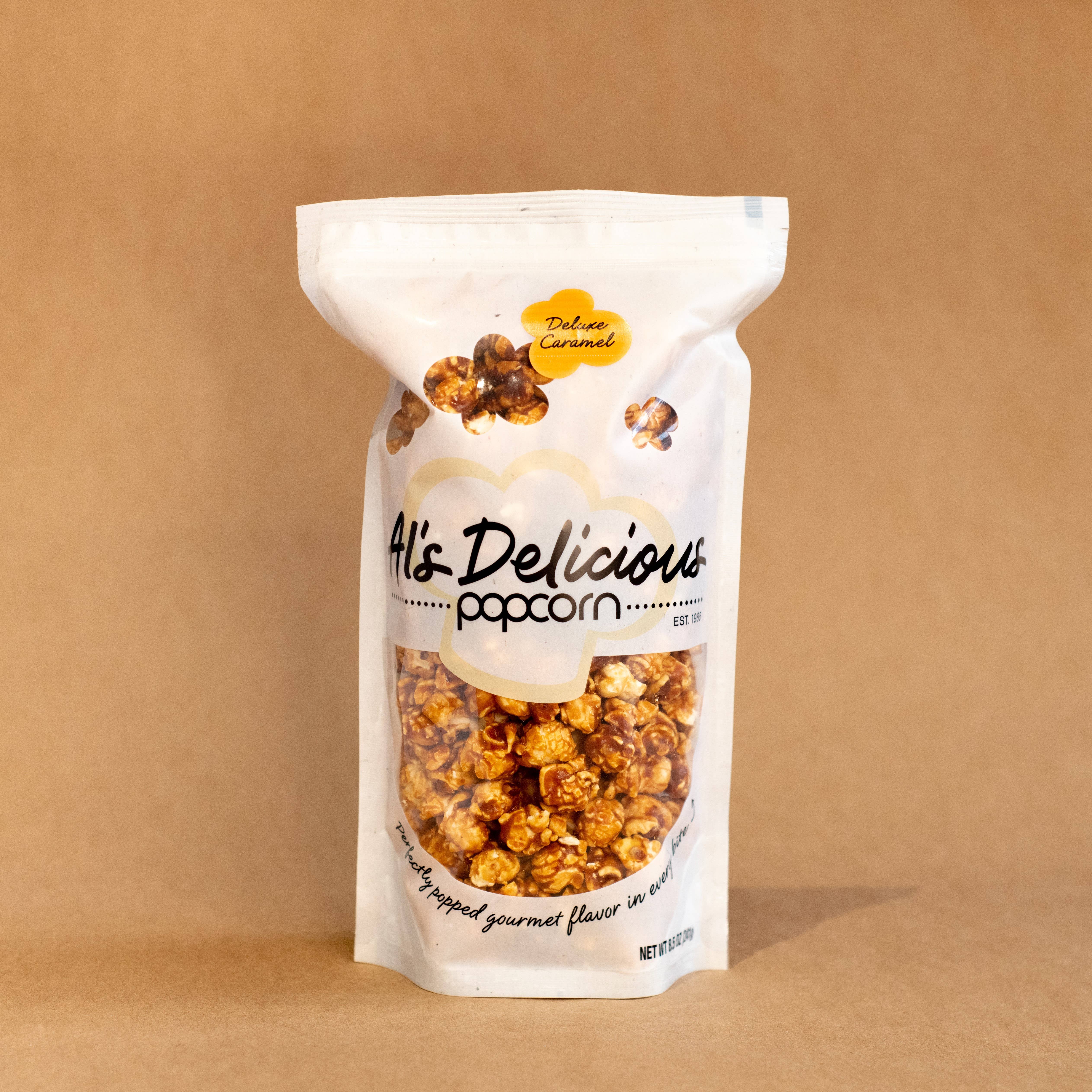 Our same delicious caramel popcorn with freshly caramelized pecans! Caramel Popcorn is a long standing favorite since the Cracker Jack Days! CONTAINS SOY, NUTS, MILK Gluten Free - Non-GMO Popcorn Shelf life is approximately 4 months- all products have a the best buy date printed on the label