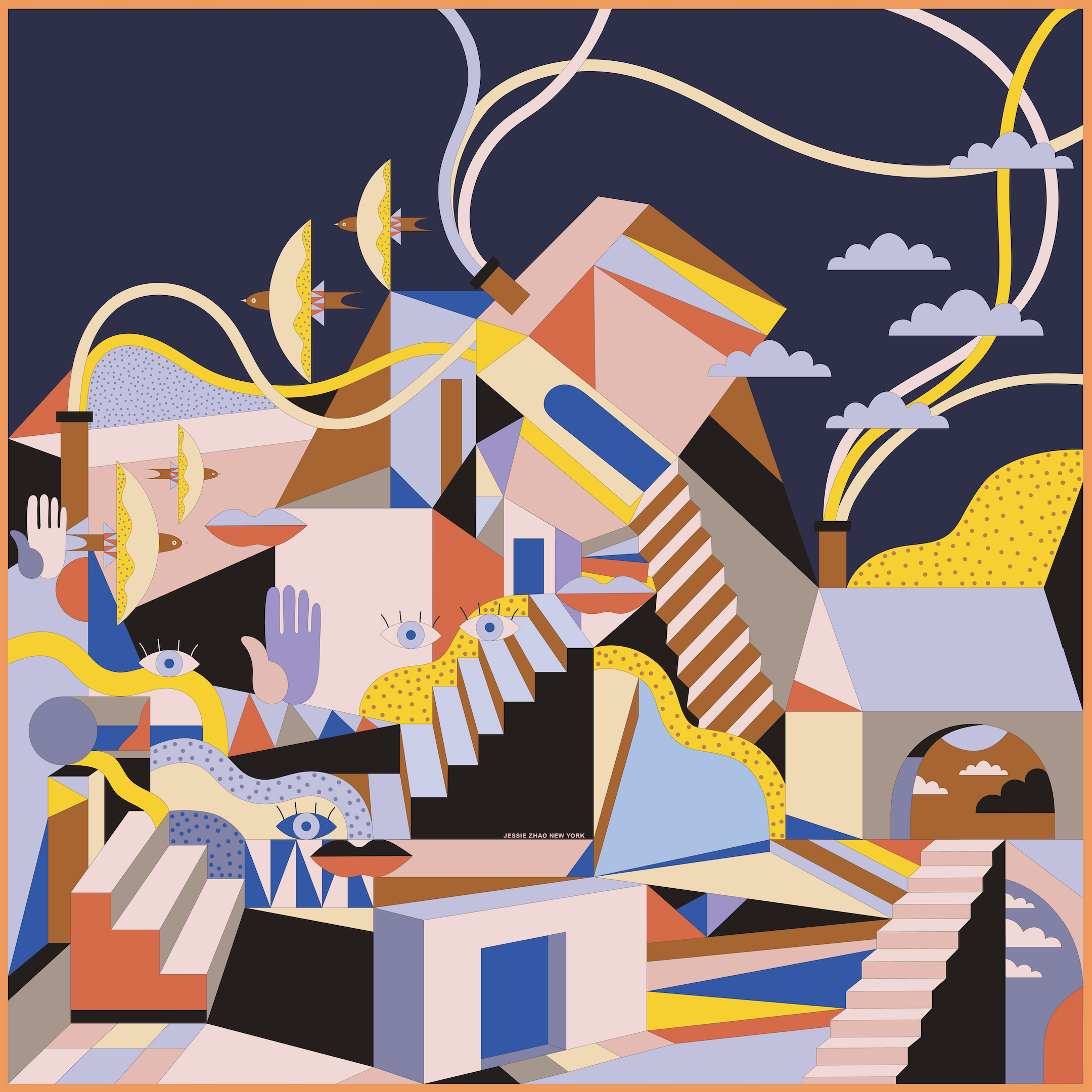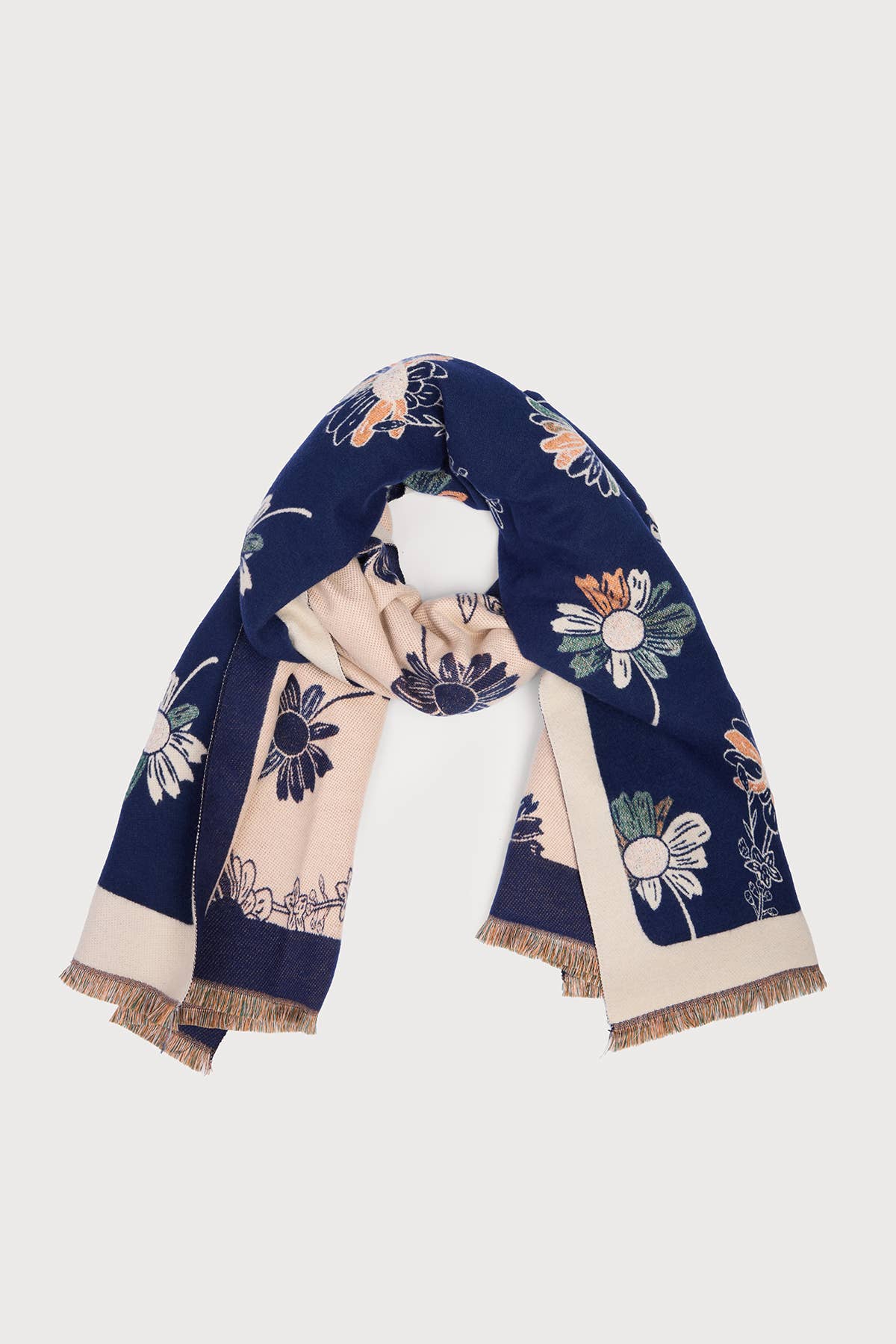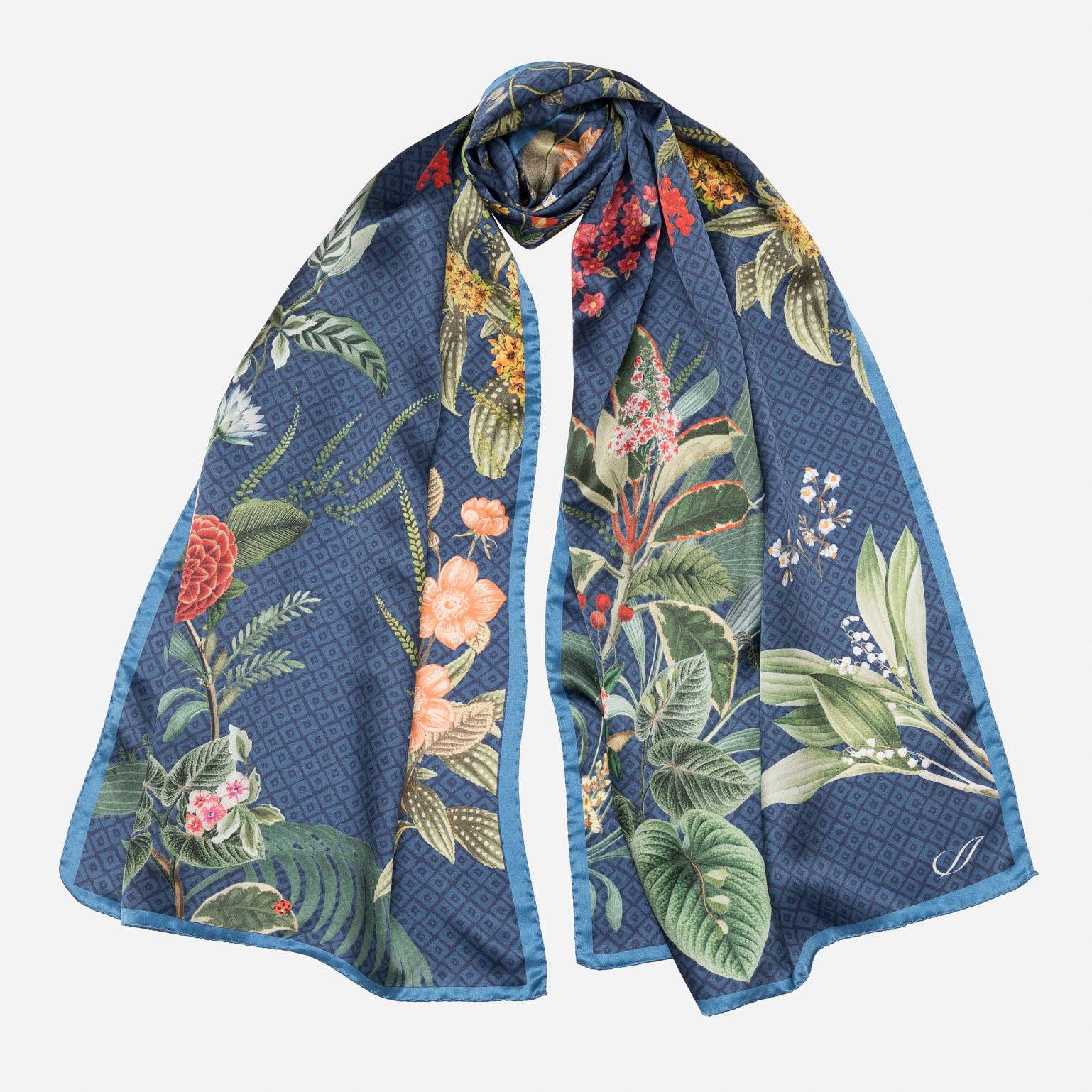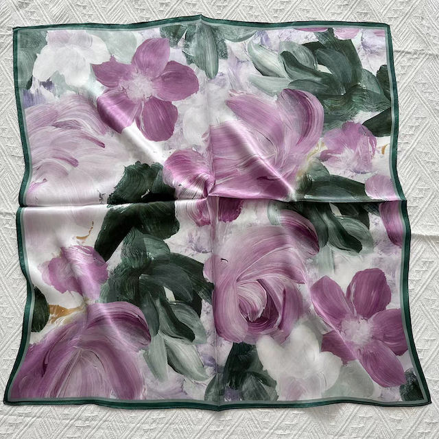 This double sided silk scarf printed on both sides with different color! You can simply flip the scarf onto its other side when you get bored of the other. Inspired by the relationship between nature and human. Hand illustrated designs which connecting fine art, fashion, and nature.Every print is hand-painted in our New York design studio and is imbued with personal meaning and storytelling. 100% Silk Hand wash cold, flat dry, iron as needed Hand-rolled 35'' x 35''