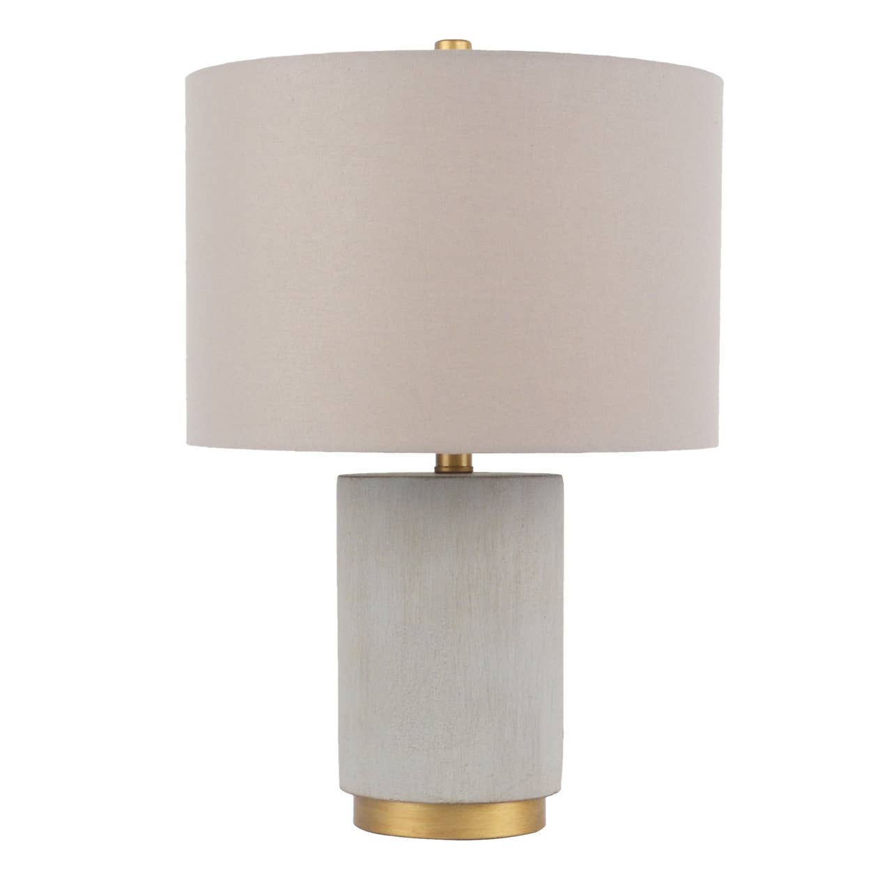 Update your living room or bedroom with the sleek style of the Glass Cylinder Table Lamp set of 2. The base is made from metal and glass with a gold finish, for an elegant touch. An off white drum-shaped shade softly filters the light, while also beautifully complementing the striking look. Providing plenty of length a 72-inch clear cord and an on/off switch on the socket, this table lamp is easy to incorporate into your existing space and perfect for accenting any transitional home decor. One Type A light bulb is needed. 2 Table Lamps:13"Dia x 26"H(2) Body Size:6"Dia x 19.5"H Shade Size:12"Dia x 13"Dia x 9.5"H Socket Size:1.5"Dia x 2.5"H Cord Length:72" • Metal and glass table lamps • Base has a gold finish • Off white drum shade • Shade does not have the ability to adjust • Wattage 60W incandescent/13W CFL/9W LED, 2 Type A, 9W LED light bulbs are included • 72 inch clear cord length and color • Not dimmable, Polarized plug • Spot clean only