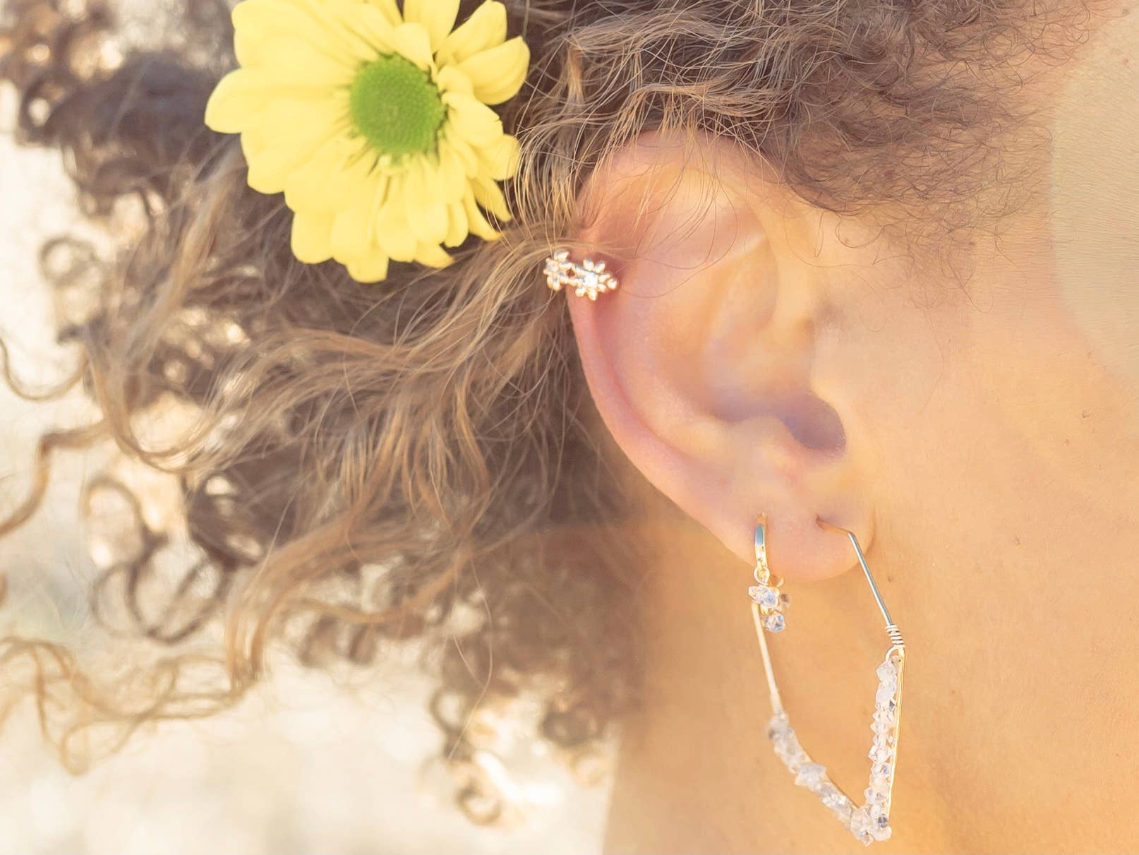 Adjustable ear cuff - no piercing required! Materials: Sterling Silver, 14k Gold Filled Hypoallergenic • Waterproof • Non-Tarnish Three sizes available based on desired placement - adjustable wire can conform to your ear for the best fit!