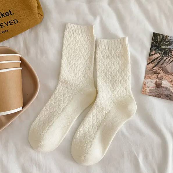 Fabric name: polyester fiber Packaging: transparent OPP bag, no label. Function: anti-friction, warm Applicable gender: female Tube height: medium tube Needle count: 200N Suitable season: winter, autumn Product category: ordinary casual socks Size: one size fits all Style: simple Weaving method: single needle