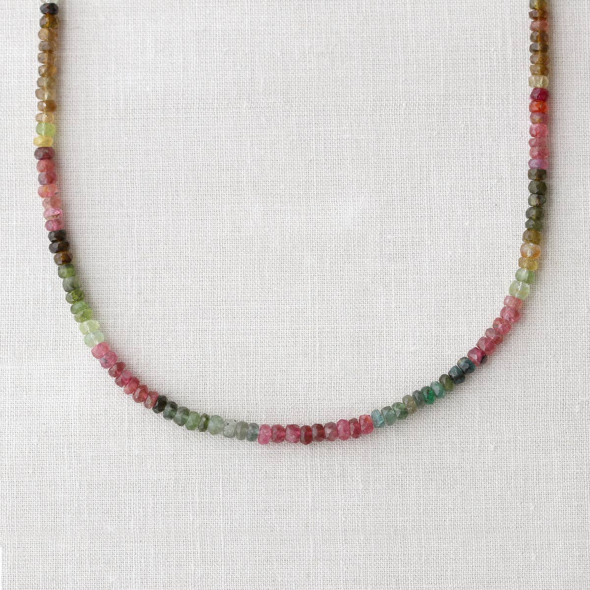 ★ Materials ★ small faceted watermelon tourmaline rondelles hand knotted on light brown cord (heat set delicate nylon thread with strong durability and resistance to fraying), sterling silver clasp ...This listing is for 1 necklace...As natural materials are used, there will be variations between necklaces...This cord is strong but also very thin and light weight, its meant to look like the gems are almost floating on the neckline... ★ Measurement ★ watermelon tourmaline rondelles: about 5mm x 3mm about 1.5" of rondelles in the bar.