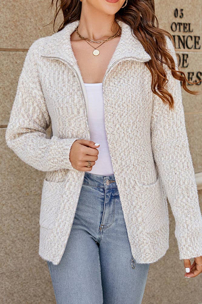 Two Tone Sweater Cardigan with Cheetah Print