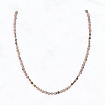* Faceted glass rondelles * Silk * 18" L * Handmade in NYC This gorgeous strand goes from dusty rose to a rich deep brown! Like some other styles, this necklace can be added to your neck stack or worn alone!