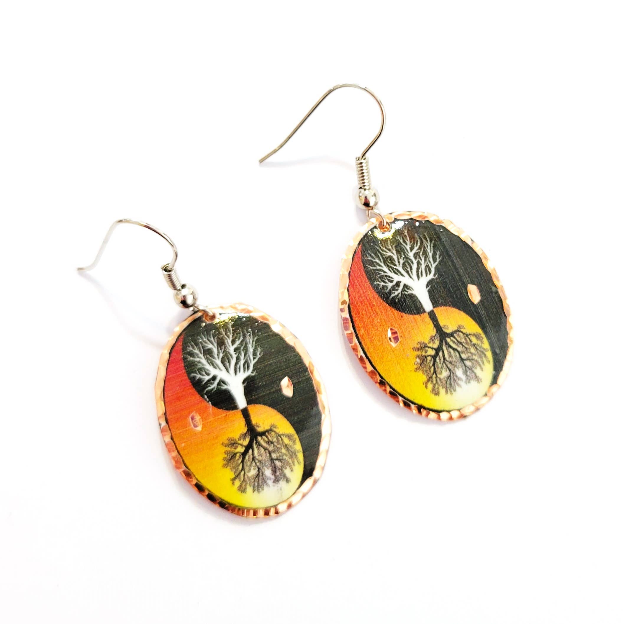 Our very stylish earrings are ultra-light weight & water resistant. Each earring is a handcrafted UV giclée printed both sides on stainless steel. We use hypo-allergenic, antique copper ear wires. Dimensions: .75" x 1.5". [vc_row][vc_column width="1/1"][vc_column_text]DC Designs began with a simple suggestion. From that suggestion, we began the discovery process of handmade jewelry.We bring together our stunning nature photography, dynamic abstract images, and a one of a kind handcrafted process into all of our earrings, pendants, and handmade jewelry you have come to love! Click here to read more.All of our products are hypo-allergenic. The ear wires are made of antique copper on steel.