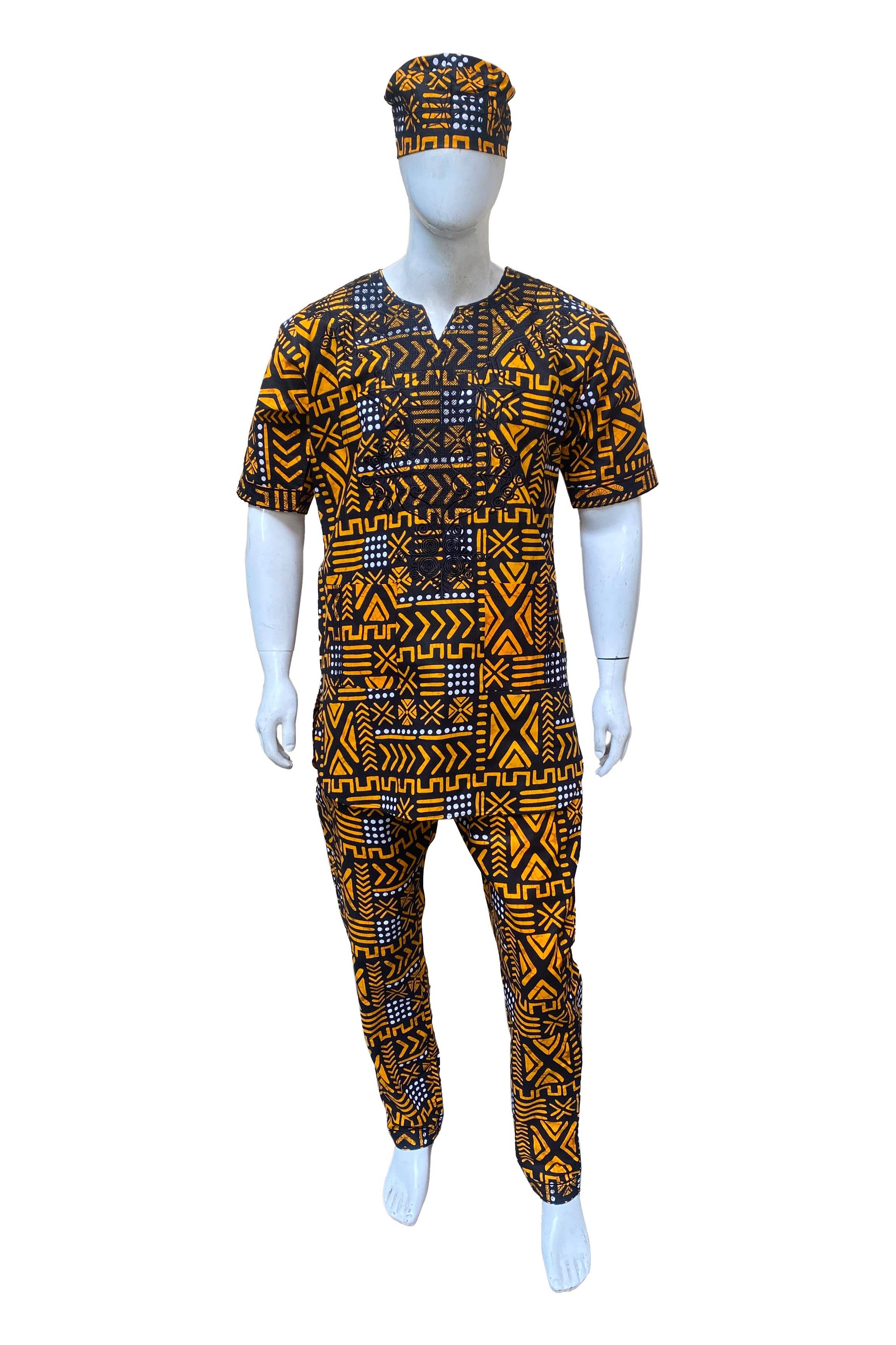 Wholesale 2 Pc African Print Long Sleeve Kaftan Top and Trouser for Men - Chidi