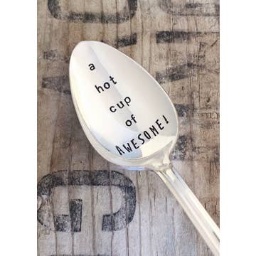 These are one of our favorite products to stock. The utensils are as described, stamped with cute sayings and easy to clean- when cleaning, simply wash with a magic eraser and the silver is like new! A lasting gift to tie onto a mug with some hot tea, or feature with a charcuterie tray.
