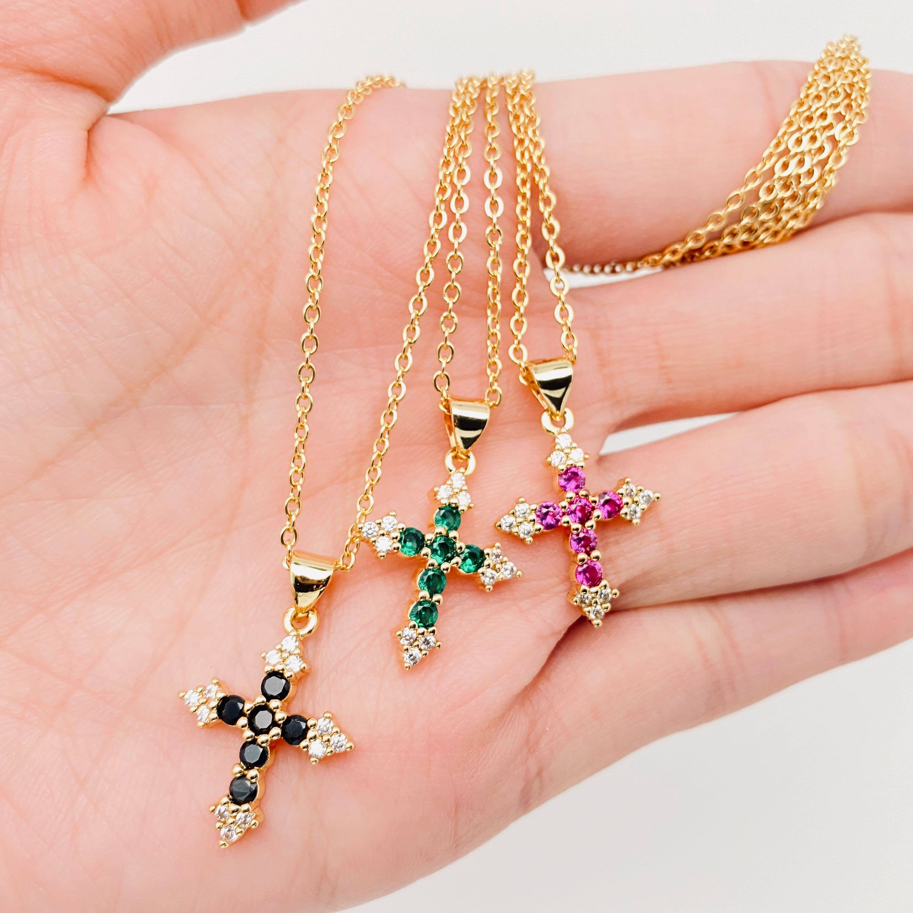 Wholesale N104C Gold Religious Medal and Cross with Crystal Bead.