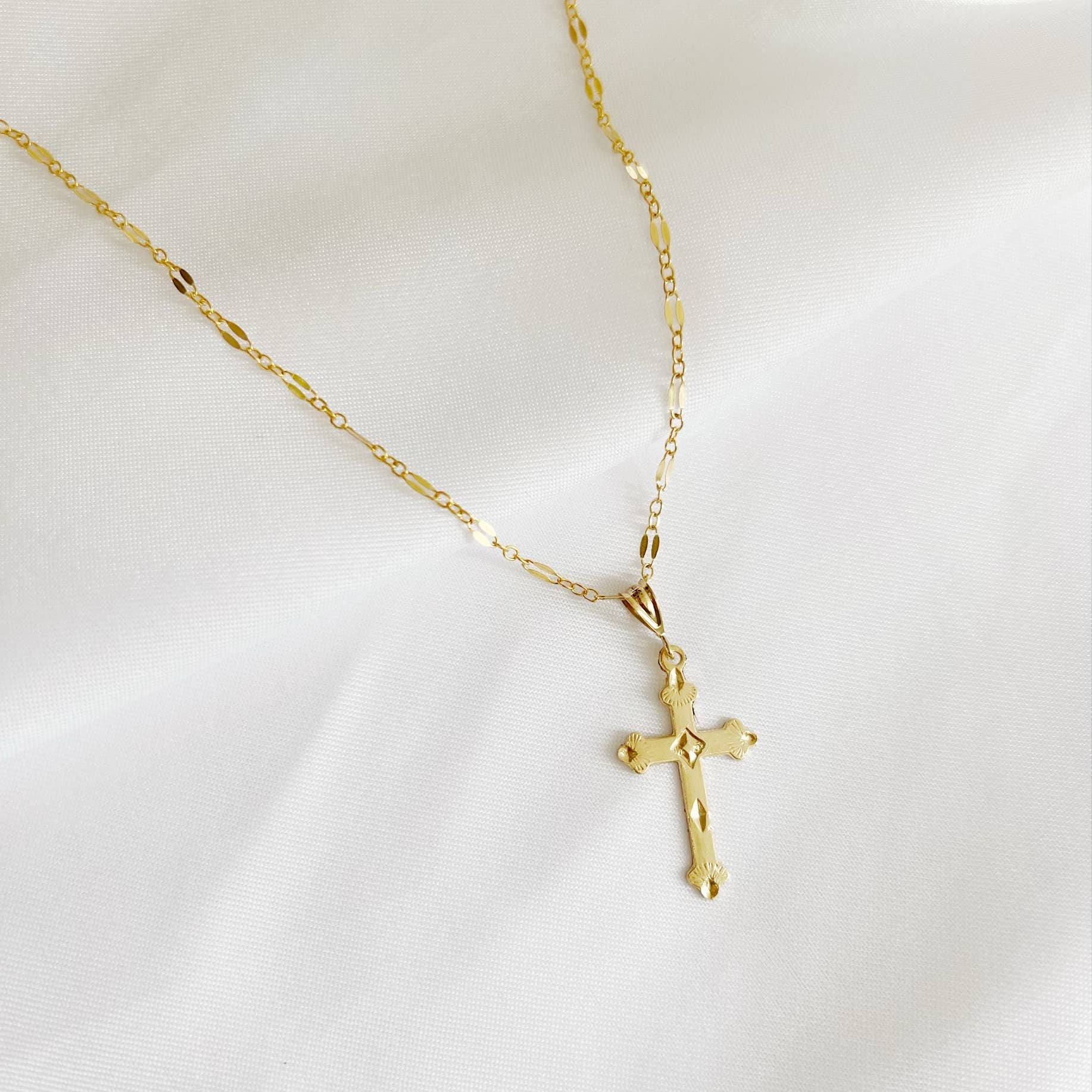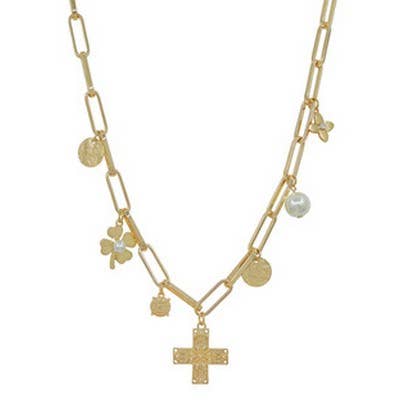 18-inch Necklace Gold Religious Medal and Cross with Crystal Bead.