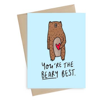 This is the only acceptable definition of a bear hug. Size: A2 (4.25x5.5) Card is blank inside. Printed with vibrant Indigo Ink on a felt-textured Neenah card stock. Attached to a red envelope with a card clasp sticker (cello sleeves available on request).