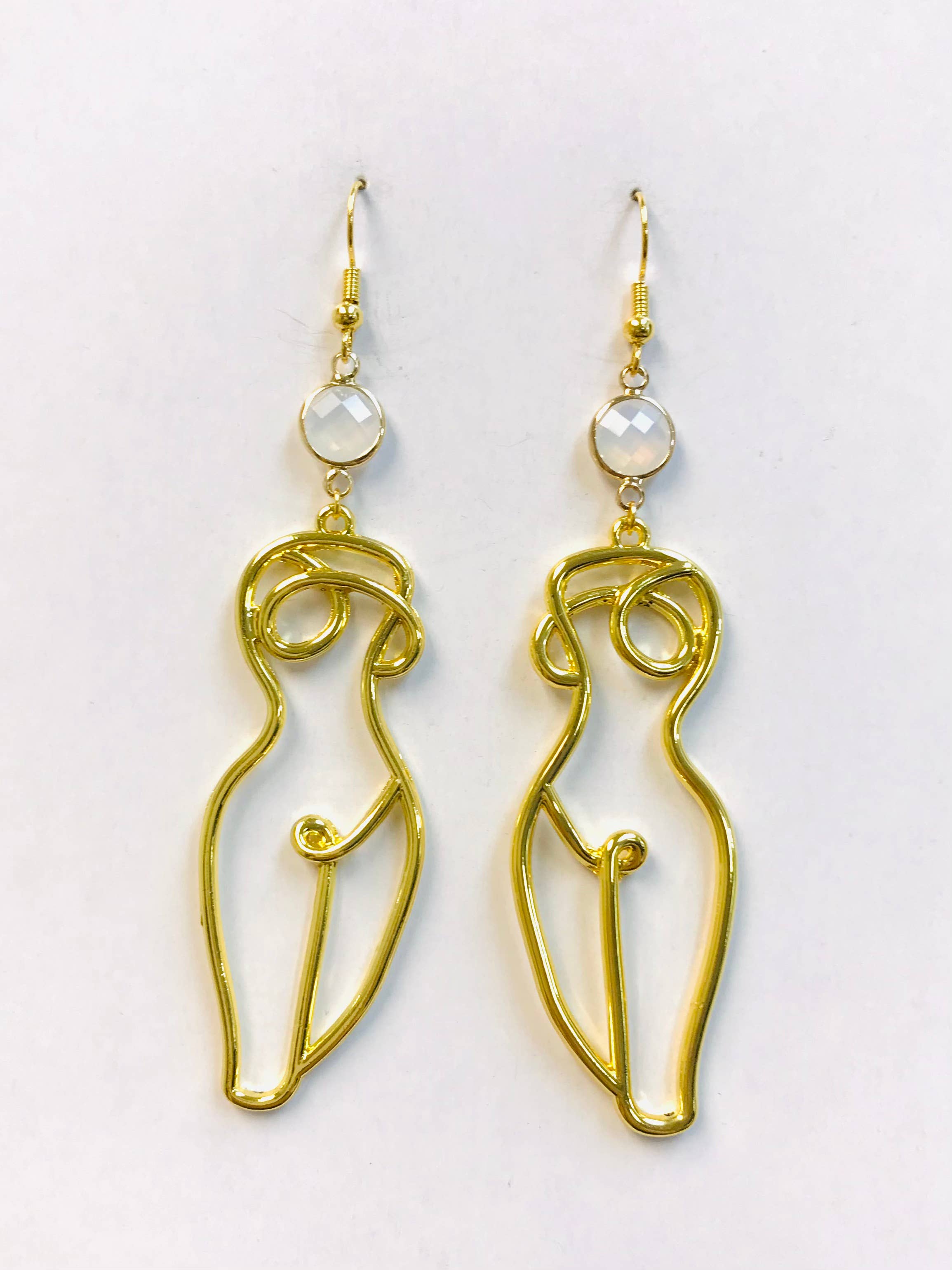 14K Gold Nude Female Sculpture Earrings, Body Earrings, Nude Female Body Earrings Charm: 63 mm x 26 mm Earring drop length: 98 Â