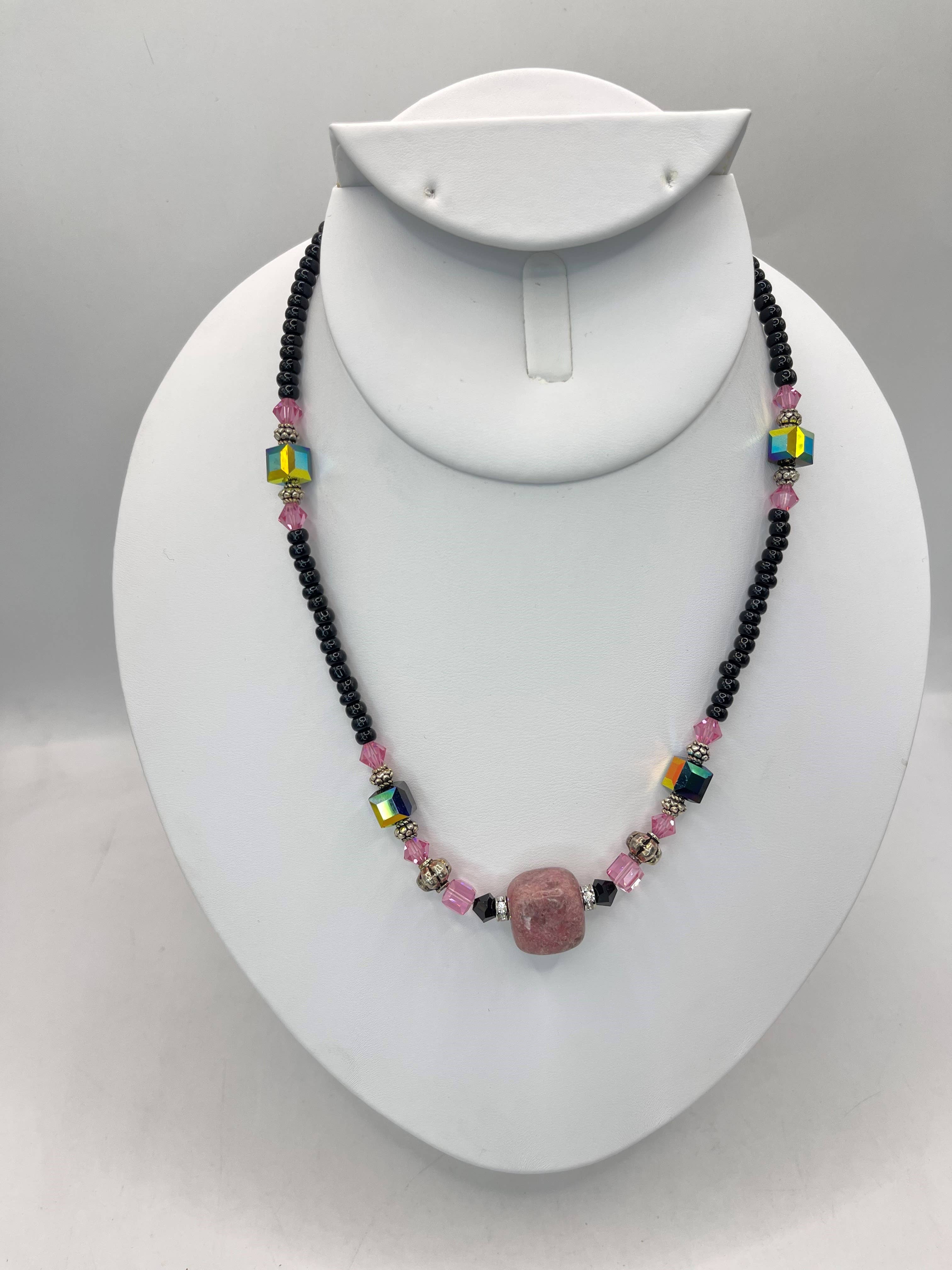 Semi Precious Heart Pendant Choker Necklace