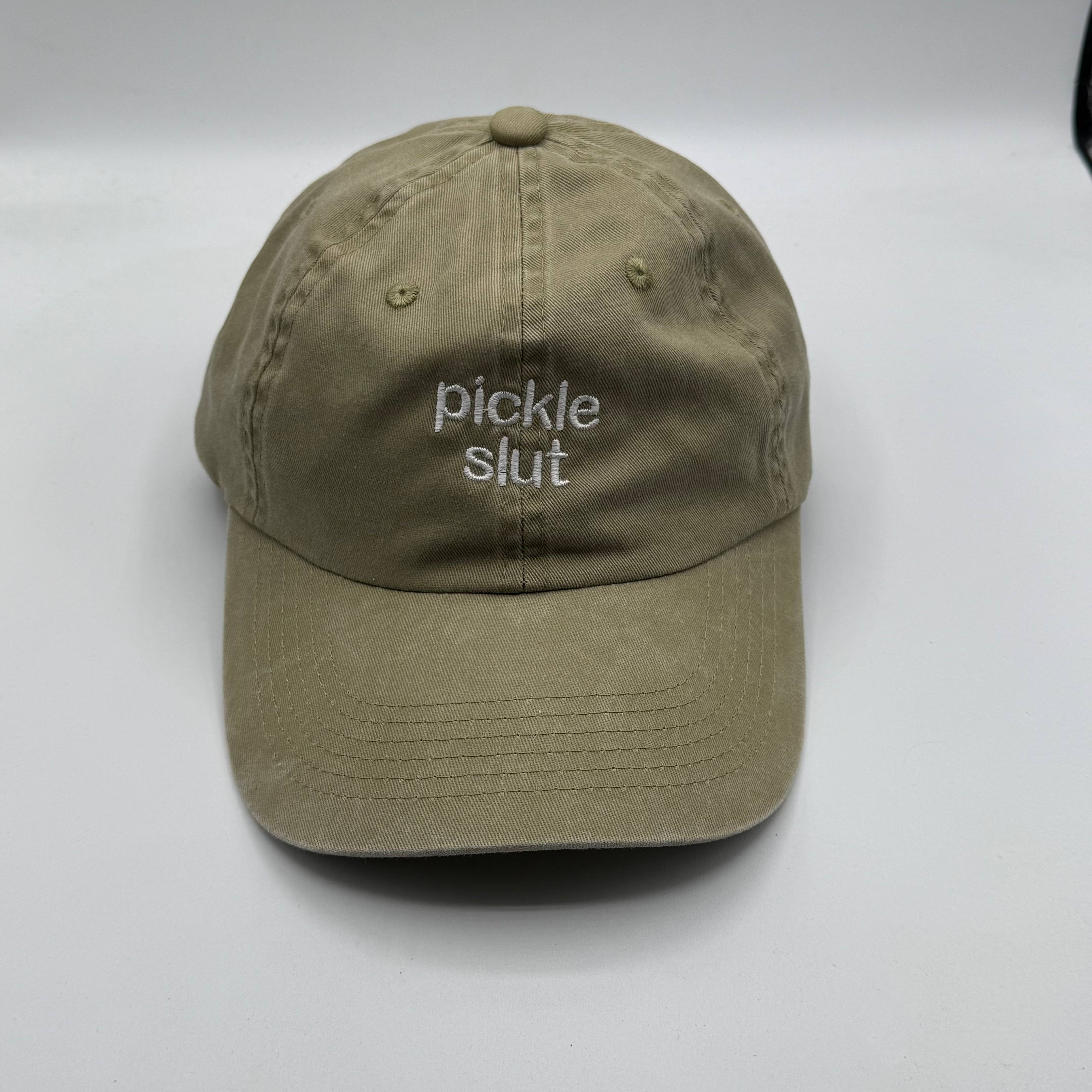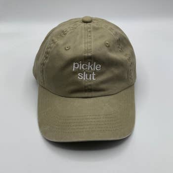 -one size fits most dad hat -embroidered in the US, manufactured in Bangladesh -pale yellow with red and white embroidery(some embroidery overlaps as seen in the pictures, we are not considering this a flaw is it gives it the vintage look we really like)