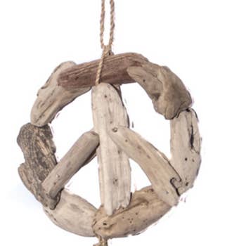 Folk Craft Wood Cut Peace Sign Lrg. Hand crafted with gathered twigs and driftwood pieces. Each is unique and sizes may vary slightly. 2Pc Min, 19”Dia x2. 5”W +Hanger - KGT43