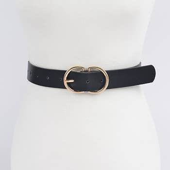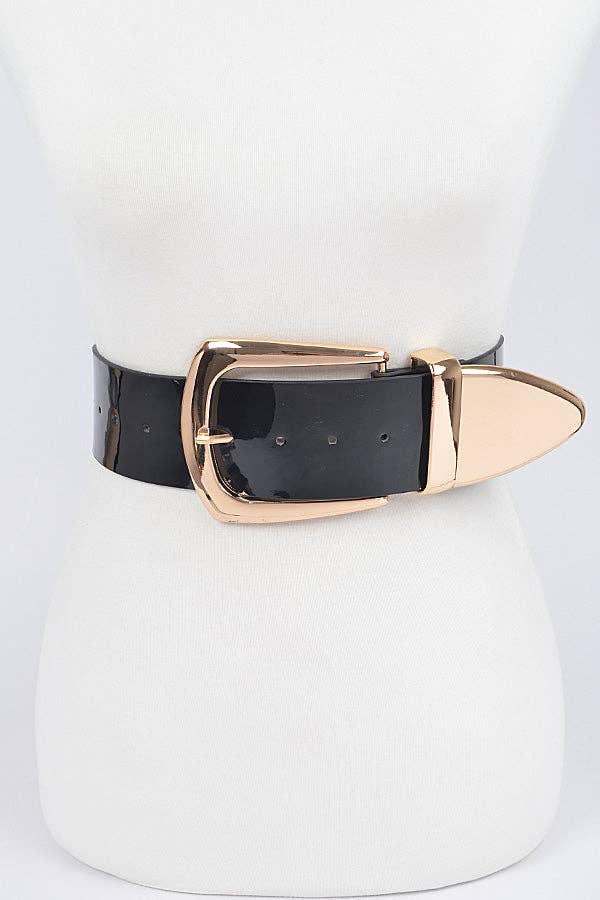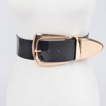 * Two buckle faux croc leather waist belt * Polyurethane/iron. * Approx. Width:1.8" Length:41" * Warning: This product can expose you to chemicals including lead and cadmium which are known to the State of California to cause cancer, birth defects or other reproductive harm. For more information go to https://www.p65warnings.ca.gov/