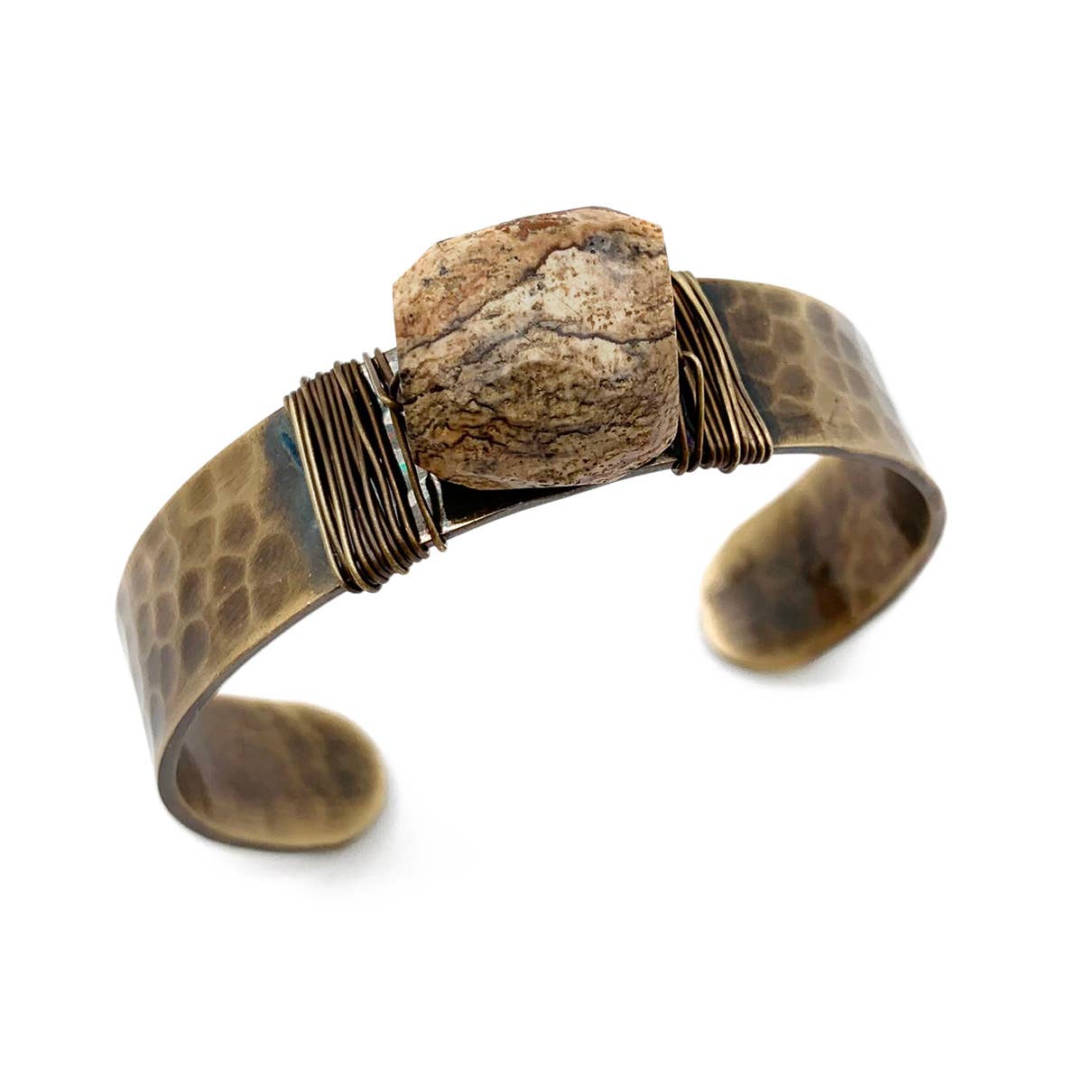 Semi Precious Stone Brass Wire Open Cuff Bracelet Bangle