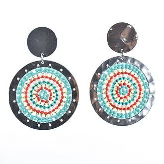 Native American and Art Deco Designs. Perfect place for unique dangle handmade earrings here available in these distinctive Native Indian earrings in southwest blue color. Southwest Native Americans believed the eight-pointed star symbolizes hope and guidance. A circle around Native American symbols signifies protection. The circle has no break and cannot be broken. The Inner Star pointed to the four cardinal points, east, west, north and south.