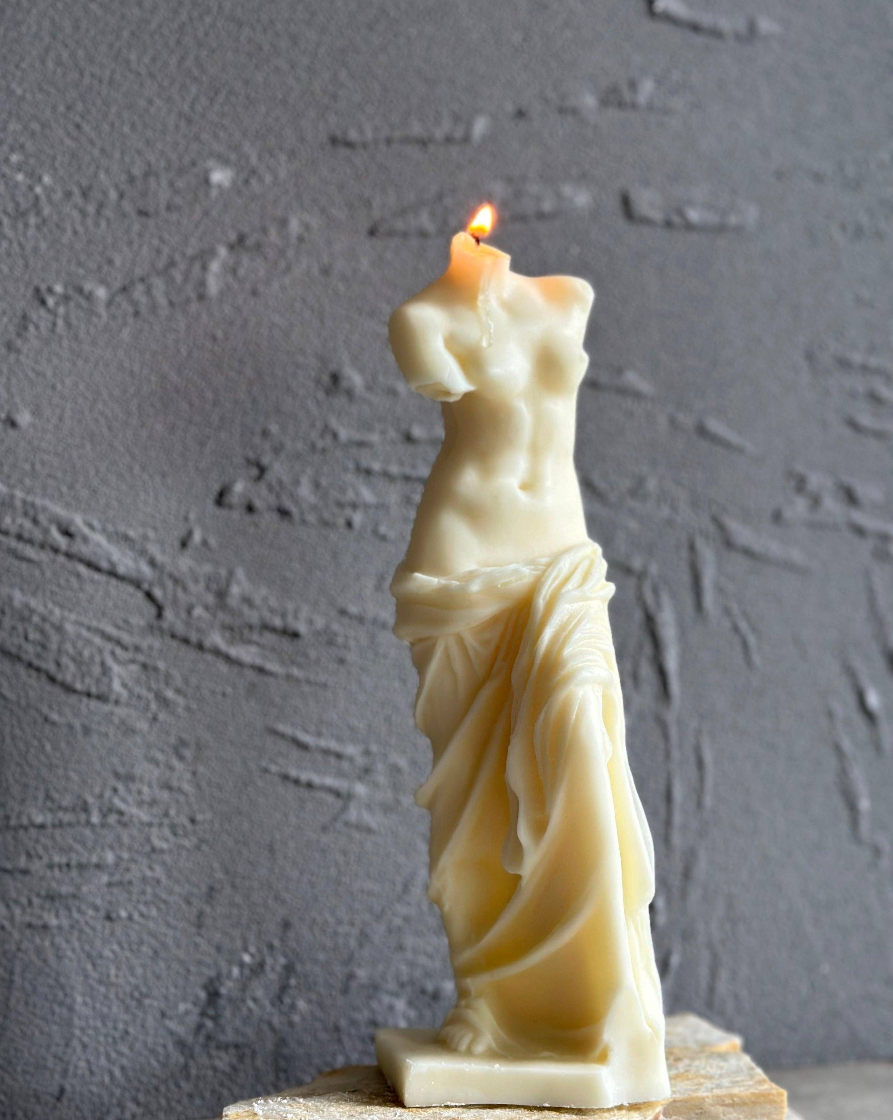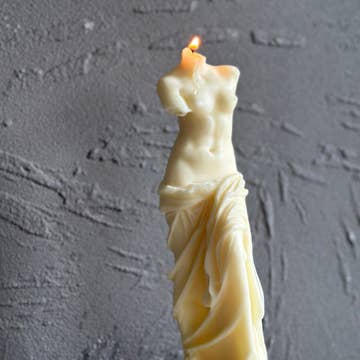 An elegant interpretation of a ghost, this full veiled woman candle is sure to add some mystery and ambience to any space. An ethereal and eerie addition to any candle collection. Available in ivory. 6”H, 2"L; 1.5"W; Net Wt. 0.18 kg Made with the perfect blend of 100% soy wax and food grade paraffin for a more aesthetically pleasing hardened decorative candle without frosting Handcrafted in Canada. Made with sustainably sourced, 100% natural ingredients including lead-free cotton wicks for a clean burn Fragrance-free (unscented) DISCLAIMER: Due to its handmade nature, slight imperfections may occur.