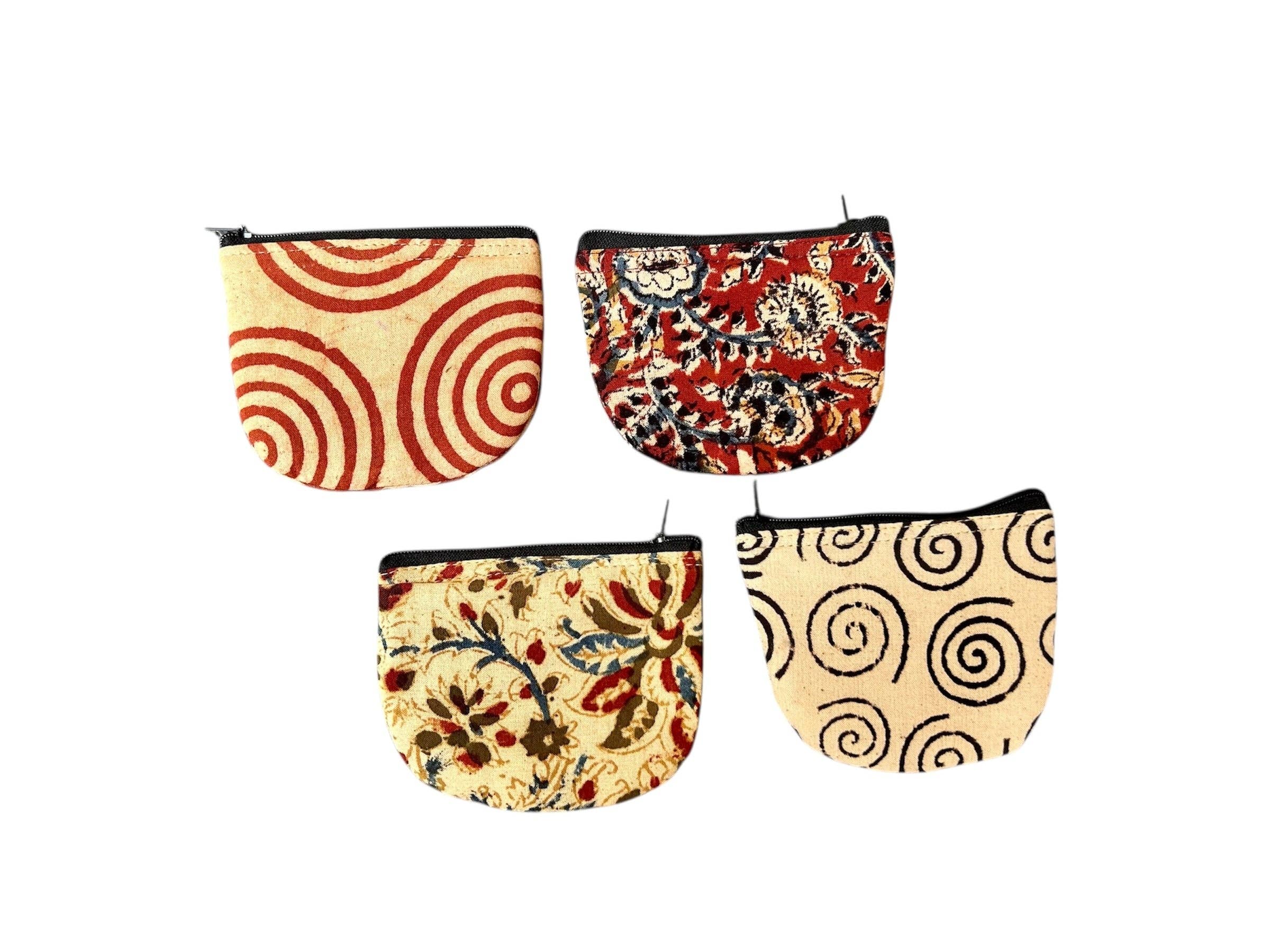 Cotton zip coin pouch with screen-print or ghata fabric 4″ x 5″. Best zip coin purse ever! I use mine for my earbuds and another for cash when i travel but you can use them for almost anything! Slips nicely into my leather passport bag from ganesh bg-d-bbl. Made from the scraps of the beautiful screen-printed cotton we use to make some of our purses or from the traditional ghata weave this zip coin pouch is a handy little bag! Great small organizer bag. 4″ x 5″ assorted colors.