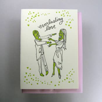 This is a handmade 5x7 risograph printed greeting card. It's the perfect card for Valentine's days, anniversaries, or just a sweet reminder to give your person! The card is blank inside for you to write your own sweet nothings to your cutie! And every card comes with a craft brown envelope. - Risograph is quirky! Slight misregistrations and variations in ink density are what give risograph its unique print texture and character. What is risograph printing? Often called digital screenprinting, every color is printed in its own separate layer, layering the fluorescent and vibrant colors to create unique textures and rich color combinations!
