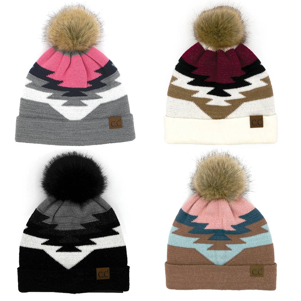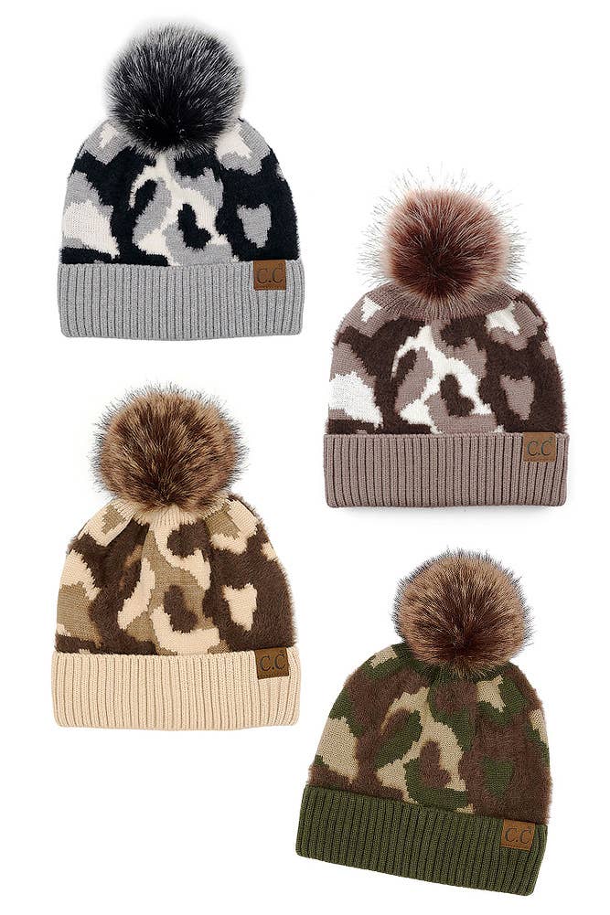 Our new authentic C.C. brand chenille 3D abstract pattern beanie is a huge hit already. You will love the detail in the pattern, quality materials, and oh-so-soft feeling the CC beanie brand offers. They are perfect to match your favorite Jane Clothing or accent any outfit.   Details: Authentic C.C. branding and quality Chenille 3D abstract pattern The folded band allows for the product to be worn slouchy or rolled up for a more fitted look. The C.C. brand tag is on both sides of the tag Faux fur pom Sizing: One size fits most C.C. tag || fits size youth 5/6 - adult || (head circumference 20" - 24") Quality fit Extremely stretchy for the perfect fit Materials: 42% viscose 35% nylon 93% polyester Pom material 100% faux fur Care instructions: Hand wash- lay flat to dry HAT4005 HAT 4005