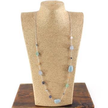 Our Tahitian Summer Necklace is the essence of seaside charm. Gorgeous brown agate gemstones, glass beads, and pearls will remind you of a tropical beach. This necklace can be worn long or doubled for a stacked look. Materials: Agate Pearl Necklace Brown, Agate, Pearl, Glass Beads Size: 48" Long No Clasp