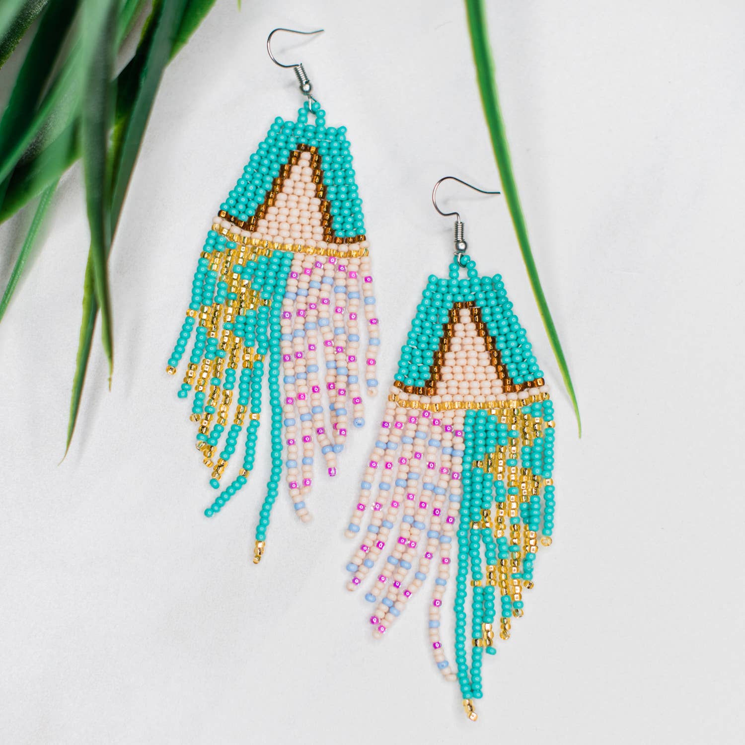 Gold-plated pin, earwire, and spike charm with glass seed beads. 3 inches long. All earrings come with plastic backings for security, on a hand-stamped Libby & Smee logo kraft card in a resealable cello bag.