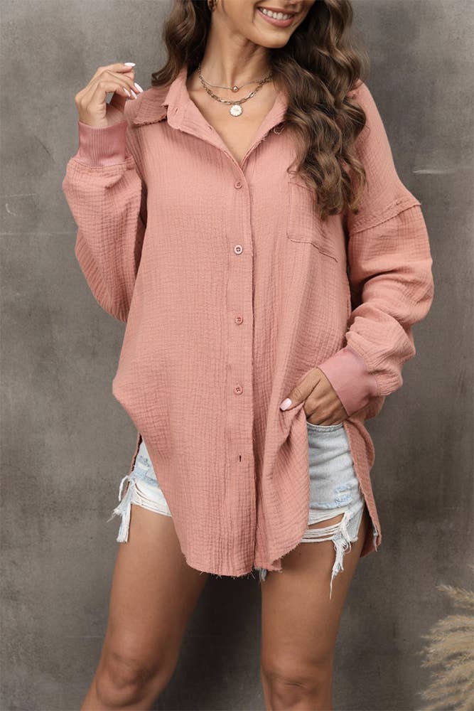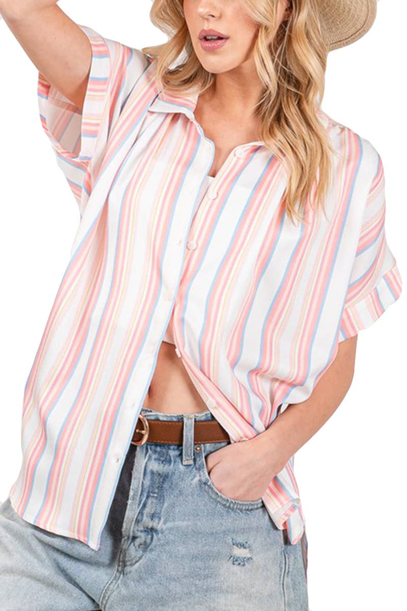 This effortlessly chic button-down shirt features a modern color-block design paired with fine pinstripe detailing for a fresh, boutique-ready look. Crafted from soft, breathable cotton, it offers all-day comfort with a lightweight feel that’s perfect for layering or wearing on its own. The relaxed silhouette is finished with natural wooden buttons and a contrast chest pocket for a touch of casual charm. Designed to drape beautifully, this shirt transitions seamlessly from casual daytime looks to elevated everyday styling. Details Material: 100% Cotton – soft, breathable, and lightweight Design: Stripe-printed color-block pattern with wooden button closure Sleeves: Long sleeve with button cuffs Pocket: Contrast chest pocket Fit: Relaxed, easy silhouette Sizes: Available in S, M, L (three size options) Perfect For: 🌸 Spring layering • 💕 Valentine-inspired outfits • 👖 Styling with denim • ☀️ Casual everyday looks • 👜 Boutique collections Trending Keywords: #valentines #spring2026 #boutiqueclothing #womensclothing #tops #shirts #stripe #colorblock #denim #risenjeans #pol #spring #valentine #valentinesdayclothing #boho #freepeople #clothing #fashionboutique *Plus Size Available* This style is also available in plus sizes. Plus Size Item Number: AM10202PLUS