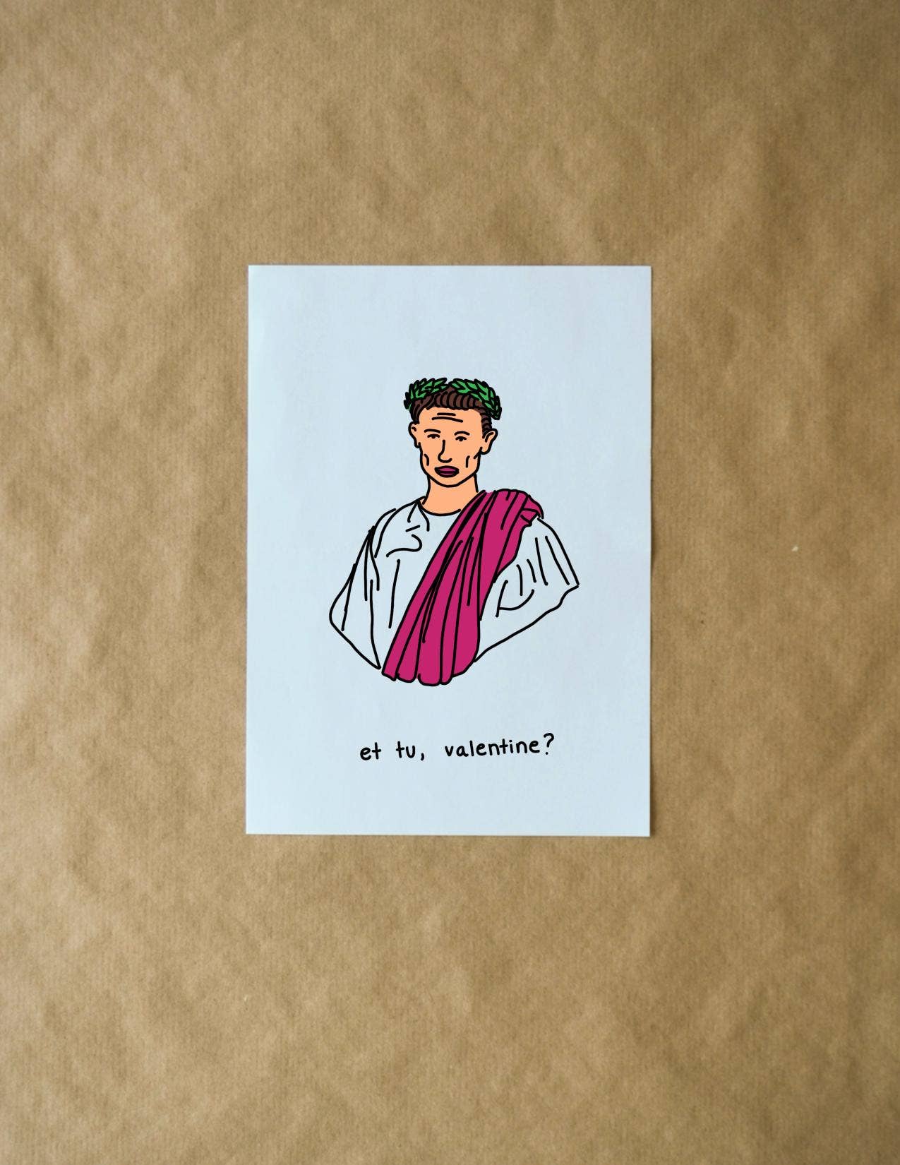 For all the wonderful singles you know! This card joyfully reminds you that the most famous Valentine in the world didn't have a date either. Cards measure 4.25 by 5.5" and are printed on 110 lb. matte cardstock paper. Each order includes a brown kraft paper envelope.