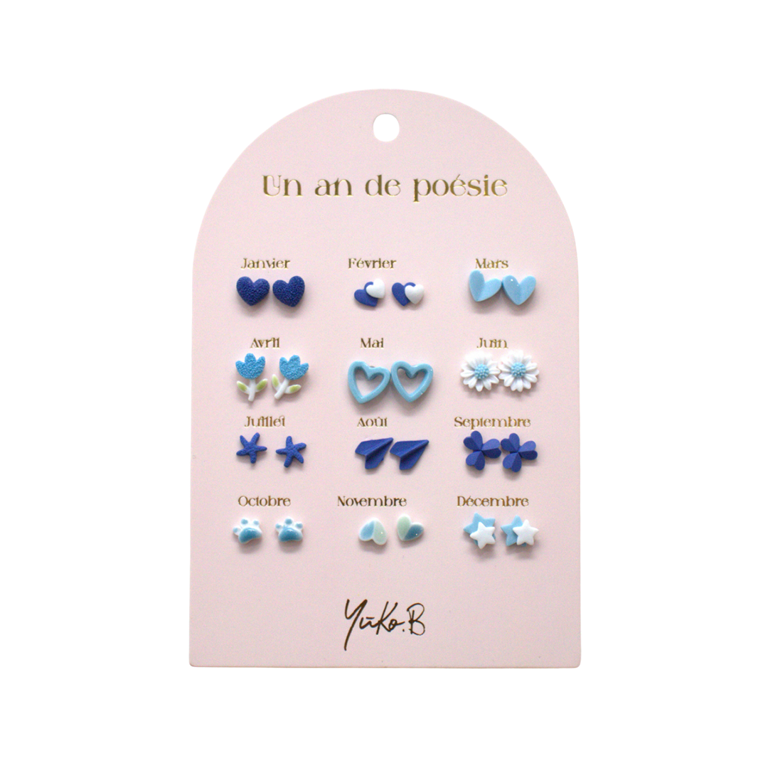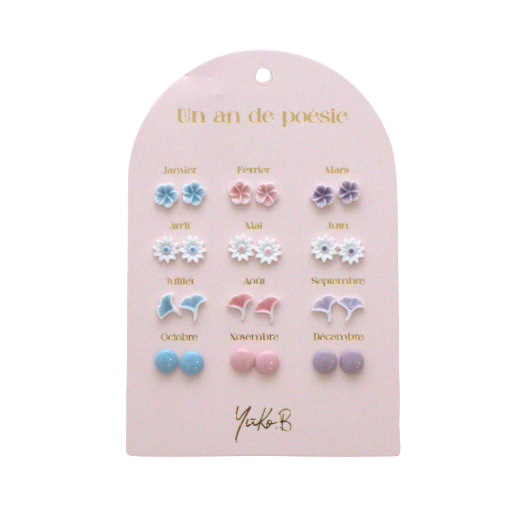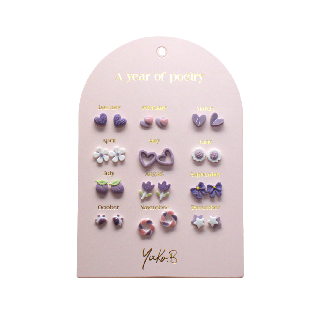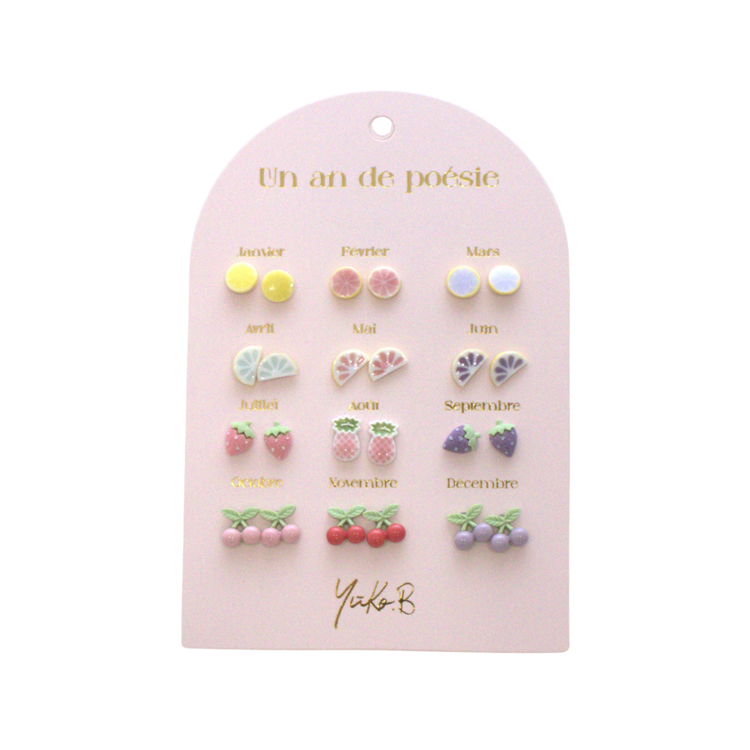 One of the most poetic creations of the year 🪄 A card of 12 pairs of earrings for pierced ears, with a purple theme, to change throughout the year. Many mothers will make this gift their own, even though it was originally intended for their child. These earrings are guaranteed nickel-free. The post is made of stainless steel and the loop is made of ceramic. Perfect for: Fashion accessories - Ear accessories - Children's fashion - Birthday - Children's gifts - Girls' gifts - Mother's Day - Children's jewelry - Princesses - Occasions - French brand