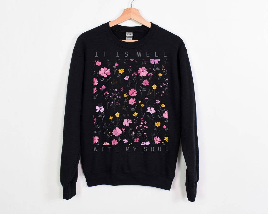 IT IS WELL WITH MY SOUL Graphic Sweatshirt Top. -Remarkably soft unisex pullover -Crewneck sweatshirt lends itself to daily wear and year-round layering. -Featuring ribbed cuffs and waistband, a crew neck, and fashion-forward fleece fabrication. For measurements Refer Size Chart. -Tear Away Label ** Allow 5-10 working days once ordered. Thank you :)