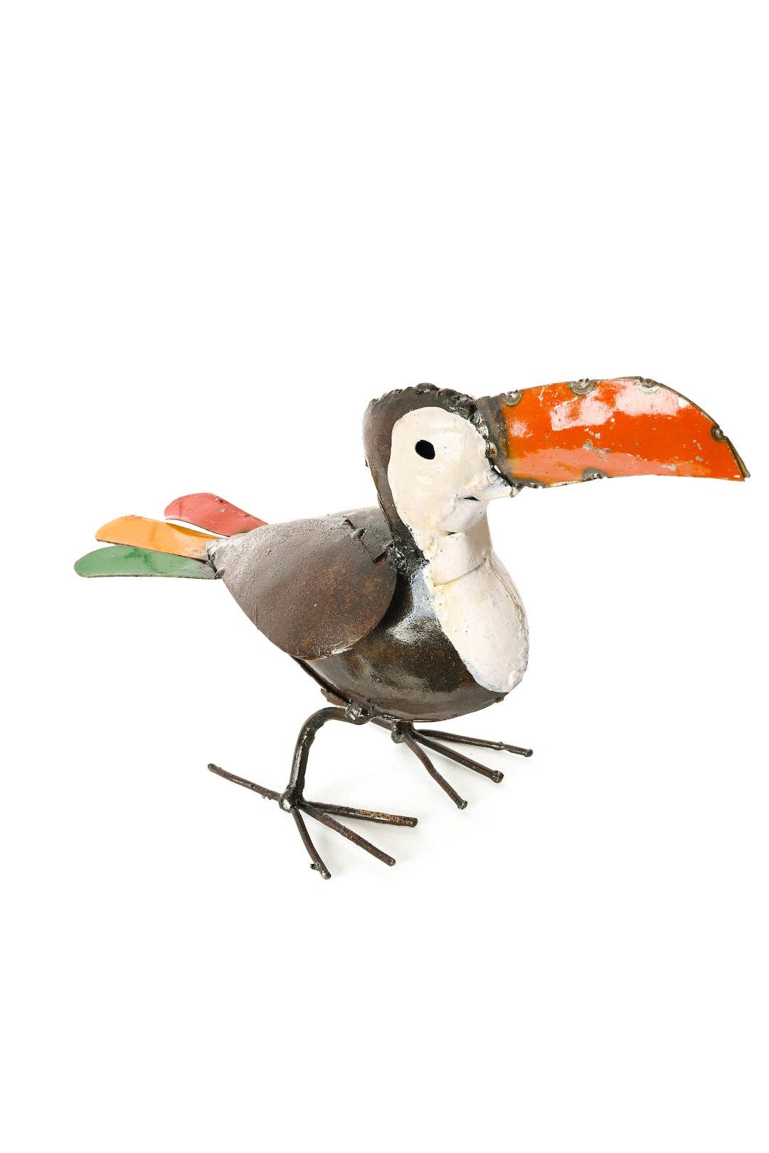 The grasshopper is a symbol of good luck and abundance. It represents the ability to take chances, move on hunches and make uncanny leaps forward. Progress is not always step-by-step, but can be extremely fast. Trust your own instincts on when to make the leaps. Old tin cans and other scraps of metal from businesses in the industrial area of Harare are turned into these delightful sculptures by these artists using snips, pliers, and hammers. Height: 2" Length: 4" Width: 2" Artist: Joseph Thomas, painted by Yeukai Tanyara Made In: Zimbabwe
