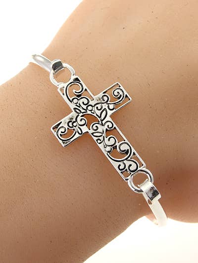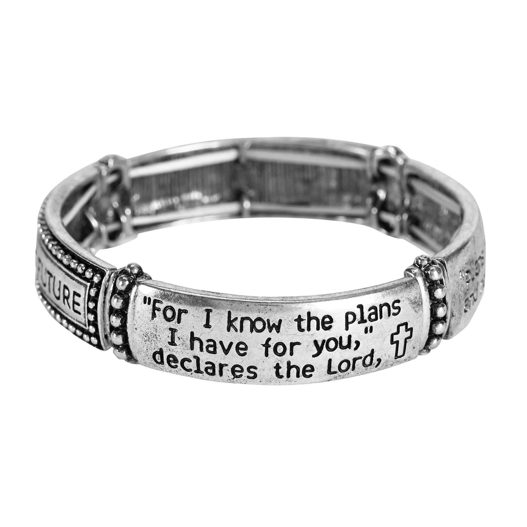 • Size : 0.25" H, 2.5" D • Charm Size : 1.25" L • This inspirational bangle bracelet features meaningful charms and an uplifting engraved message that brings daily encouragement. Its elegant, timeless design makes it a thoughtful accessory for gifting or personal wear, offering a reminder of strength, faith, and perseverance. • Lead and Nickel Compliant