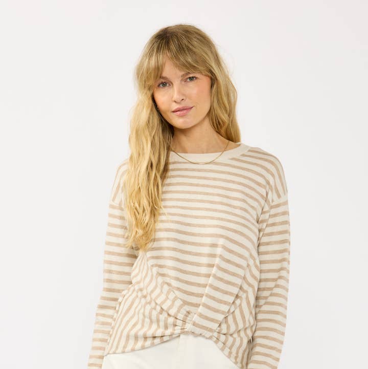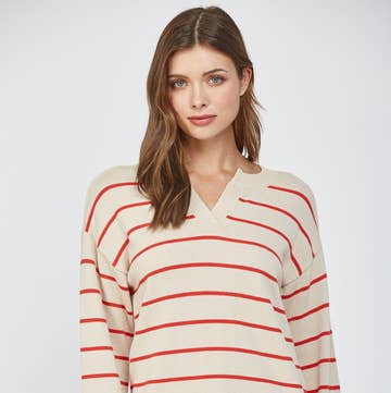 Designed for effortless seaside charm, this striped funnel-neck pullover features a stylish half-zip, dropped shoulders, and ribbed knit cuffs. A cozy yet versatile staple, it’s perfect for layering and adding a touch of coastal flair to any collection. Pair it with everyday denim for a relaxed, laid-back look.